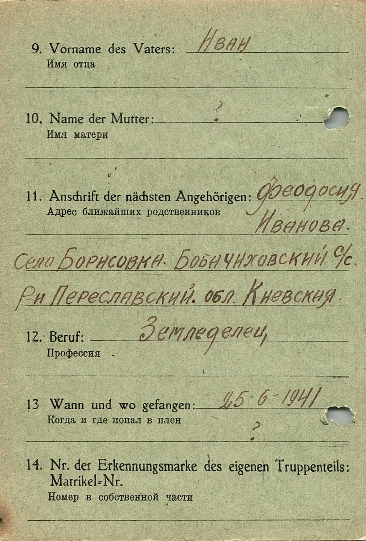 Военнопленные, трофейные карточки. Киевская обл.