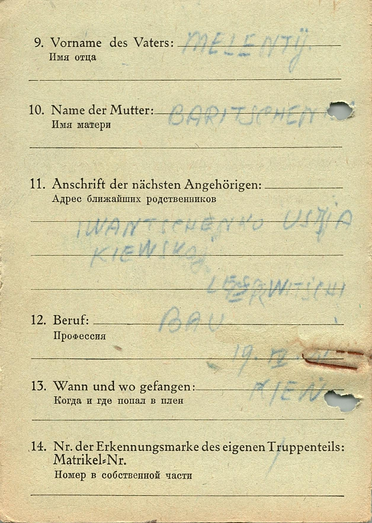 Военнопленные, трофейные карточки. Киевская обл.