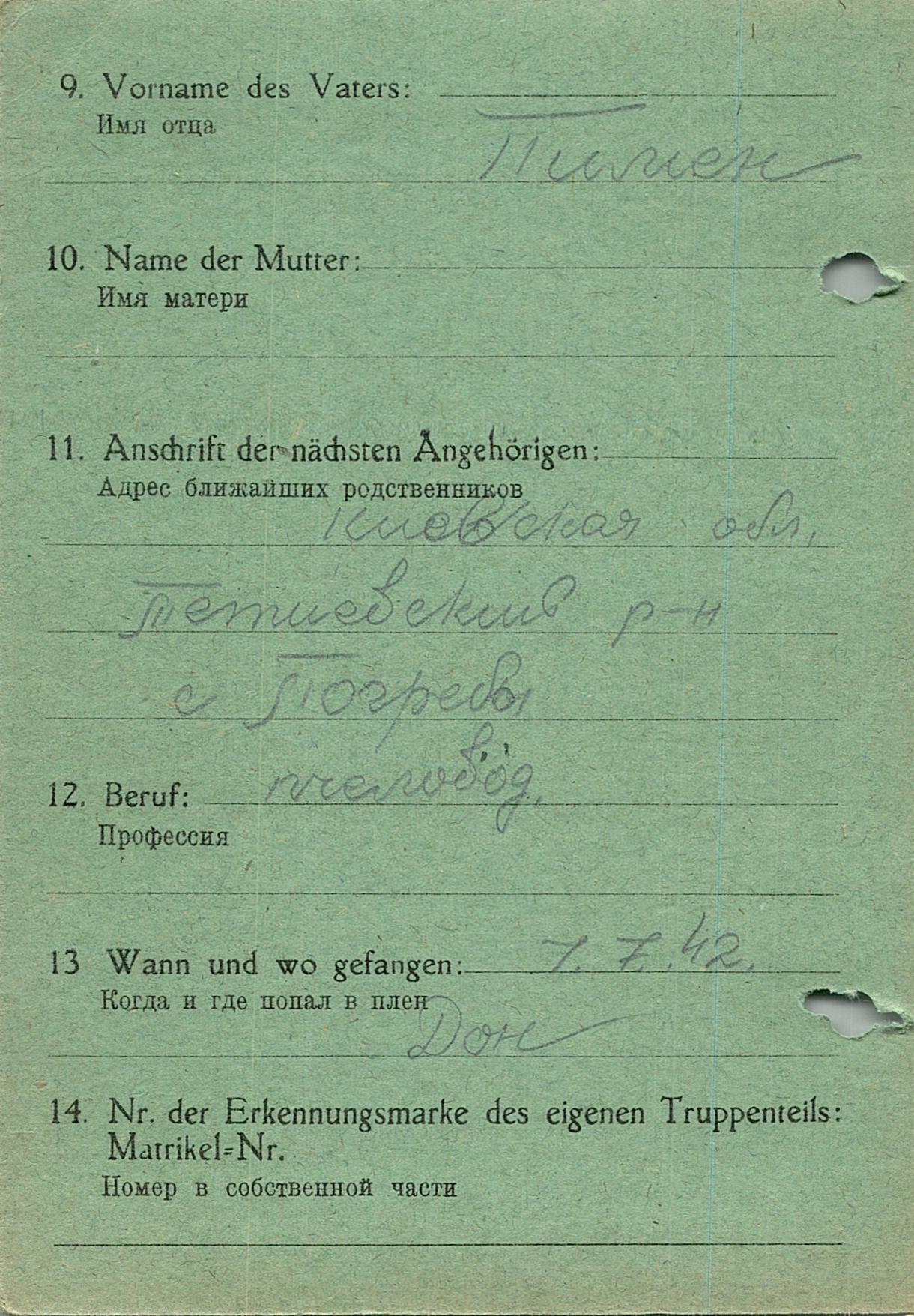 Военнопленные, трофейные карточки. Киевская обл.