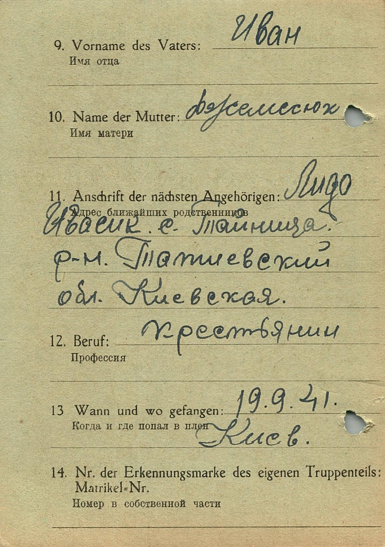 Военнопленные, трофейные карточки. Киевская обл.