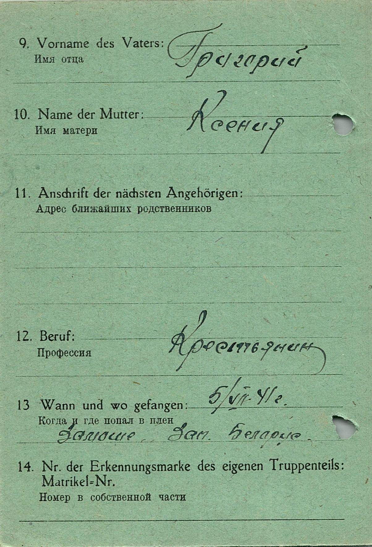 Военнопленные, трофейные карточки. Киевская обл.