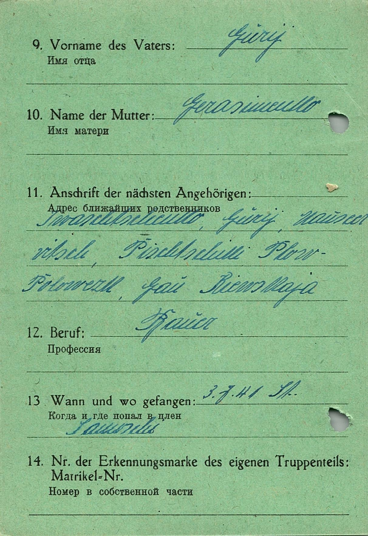 Военнопленные, трофейные карточки. Киевская обл.