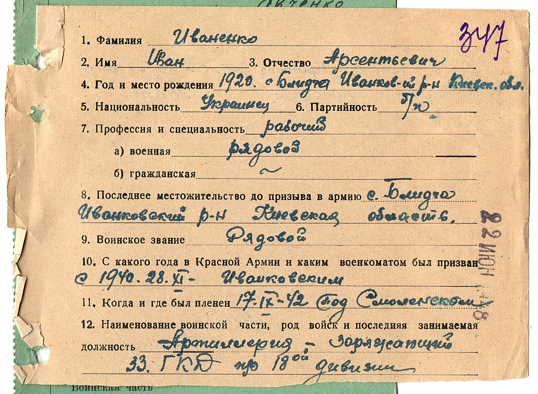 Военнопленные, трофейные карточки. Киевская обл.