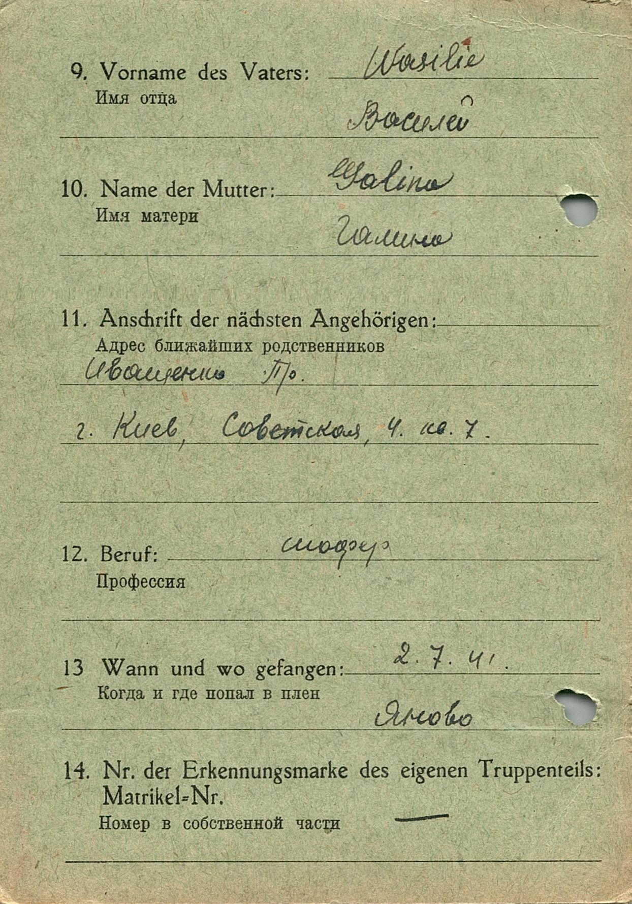 Военнопленные, трофейные карточки. Киевская обл.