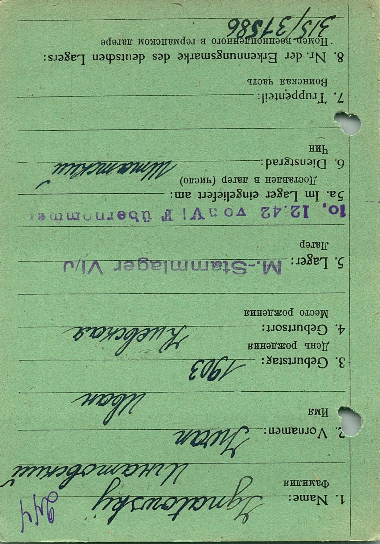 Военнопленные, трофейные карточки. Киевская обл.