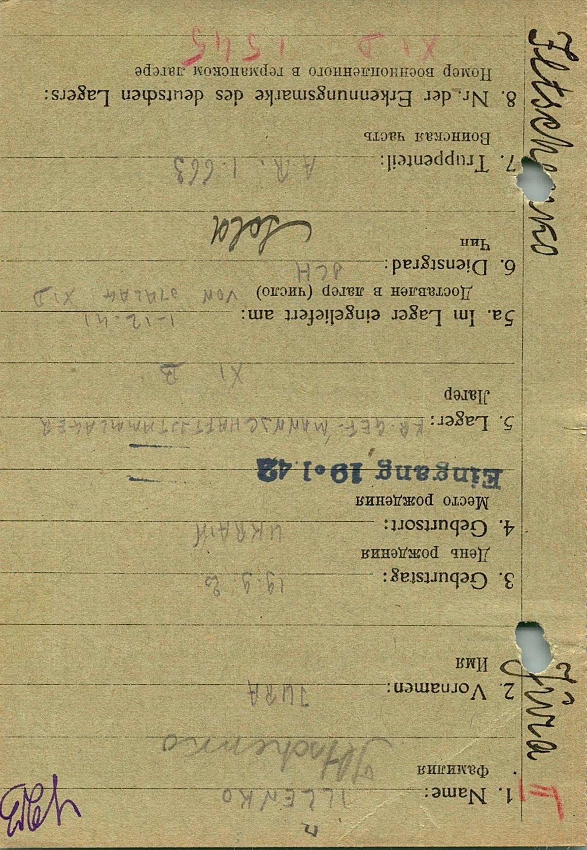 Военнопленные, трофейные карточки. Киевская обл.