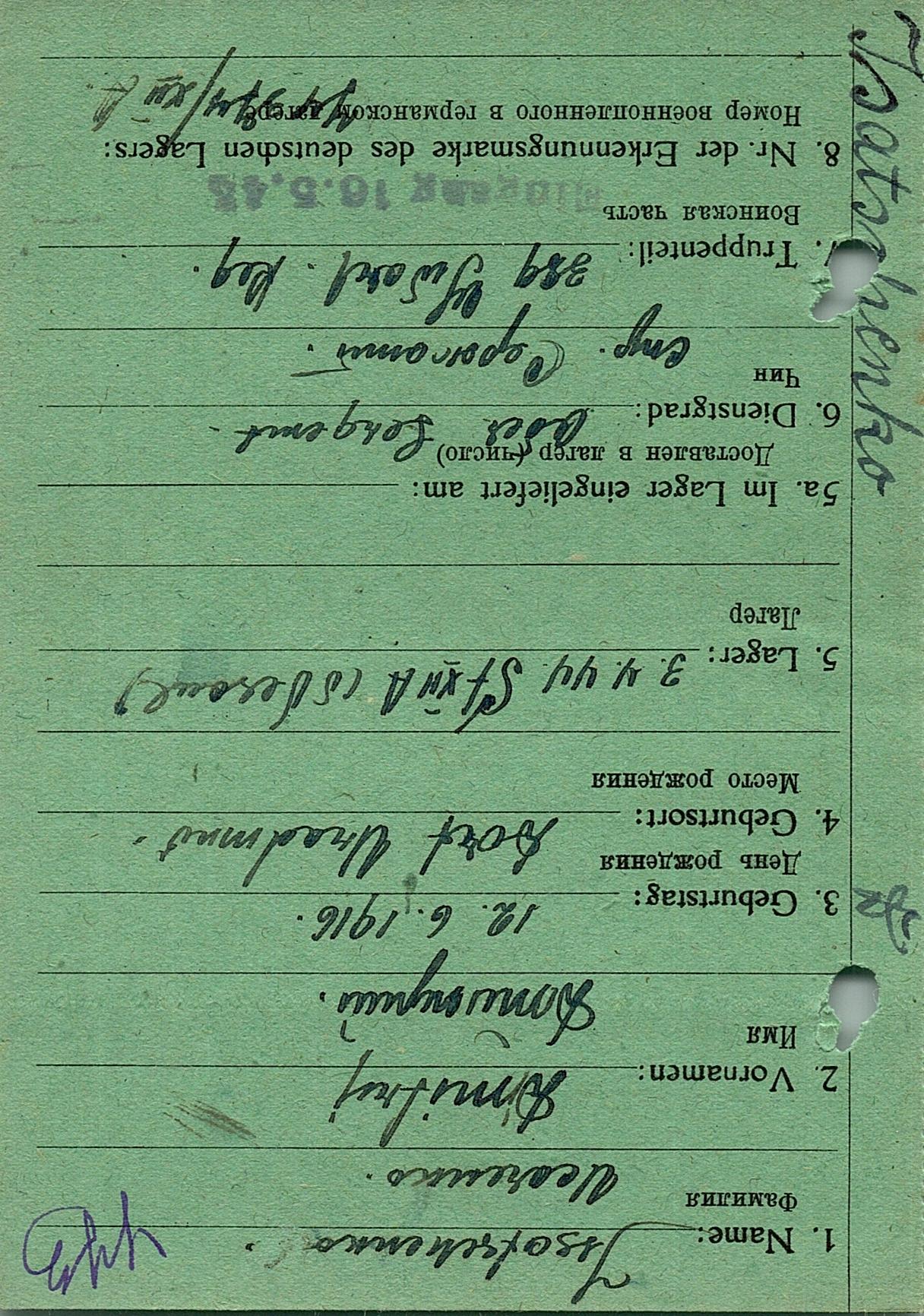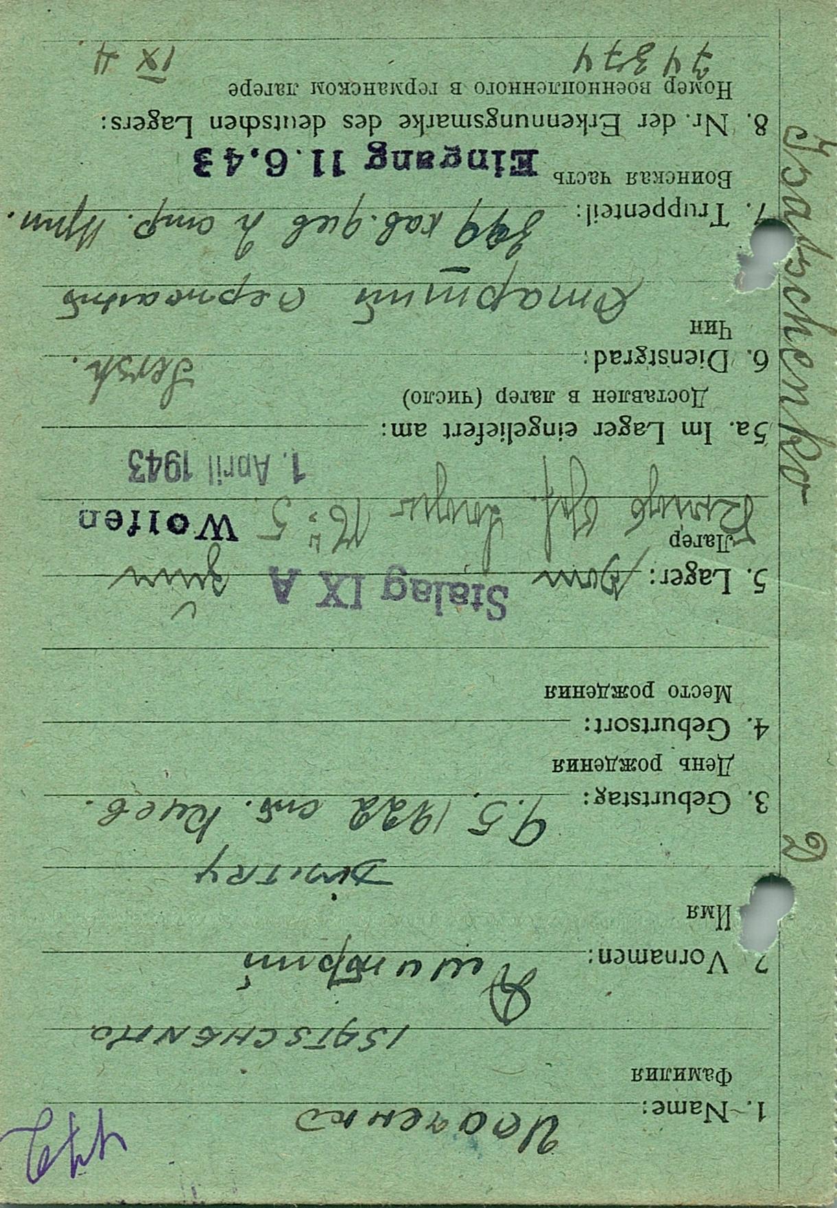 Военнопленные, трофейные карточки. Киевская обл.