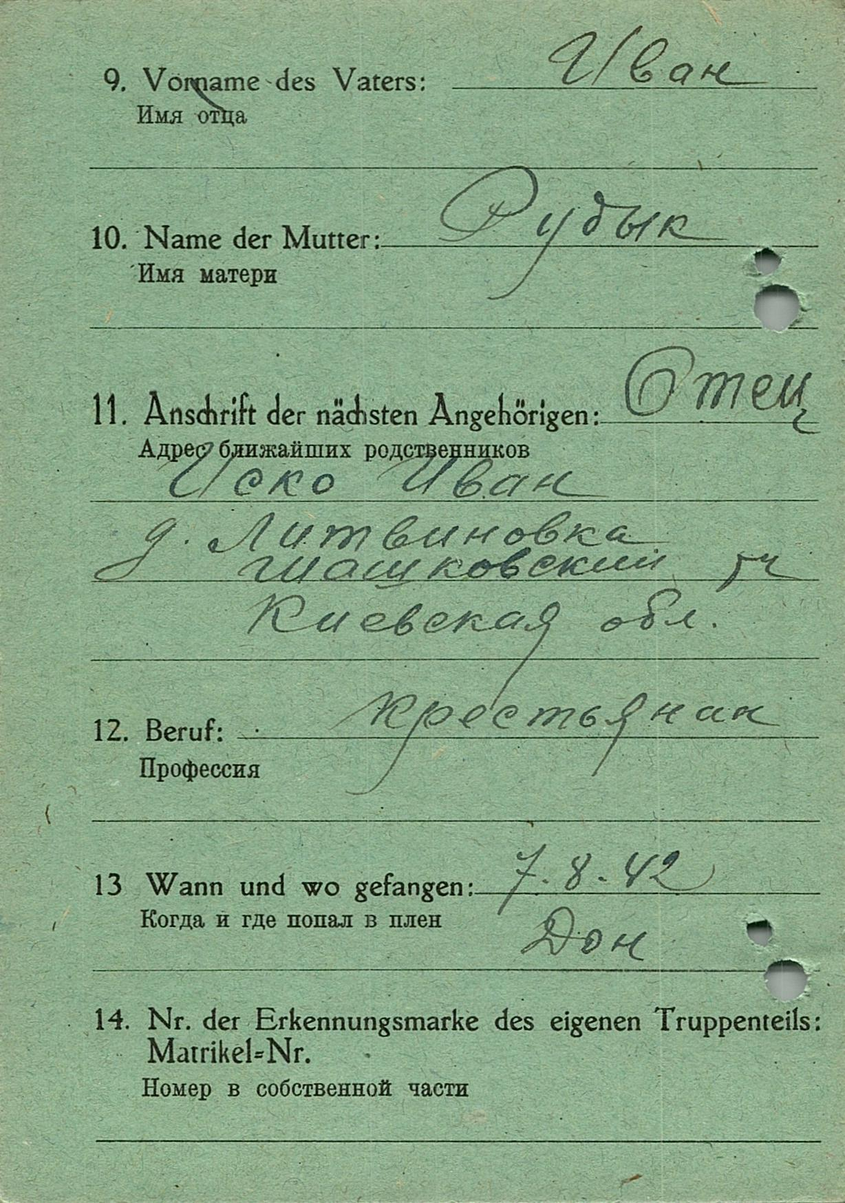 Военнопленные, трофейные карточки. Киевская обл.