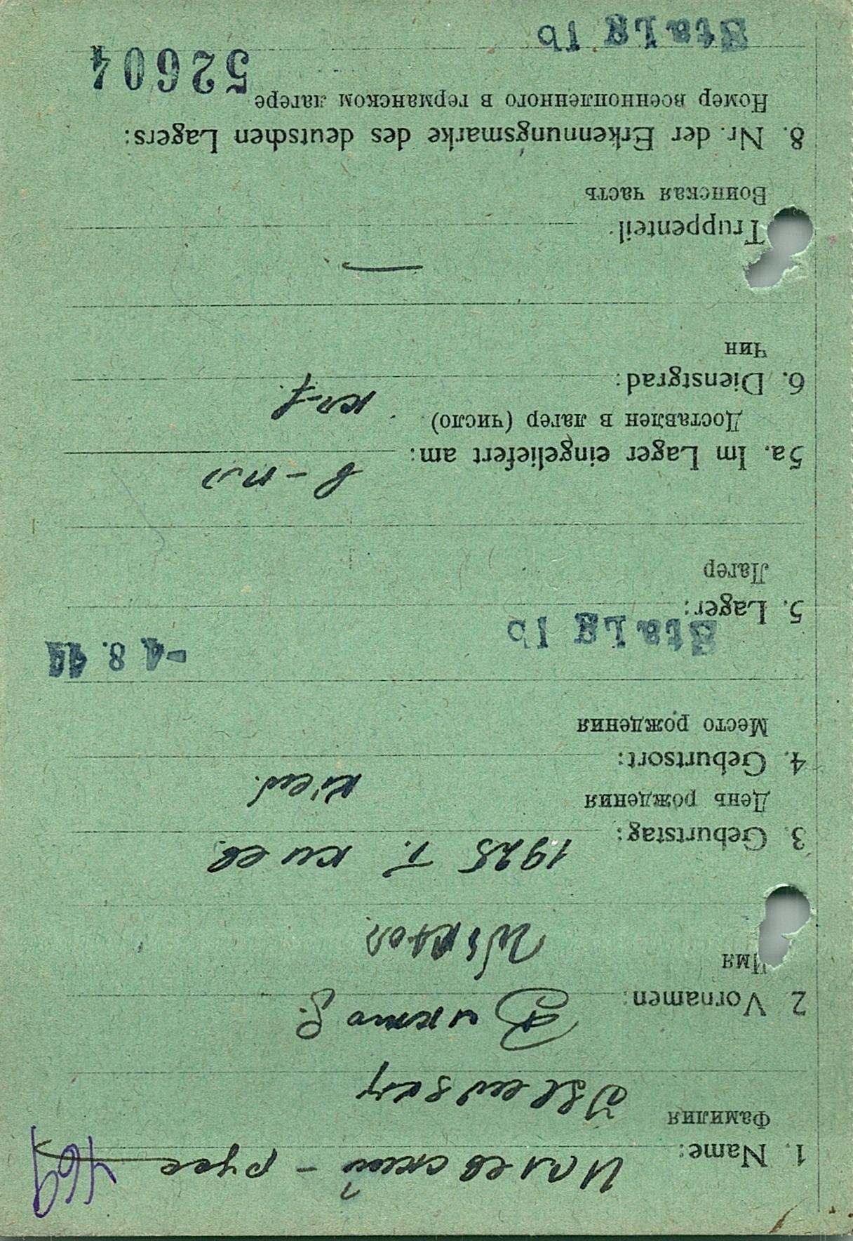 Военнопленные, трофейные карточки. Киевская обл.