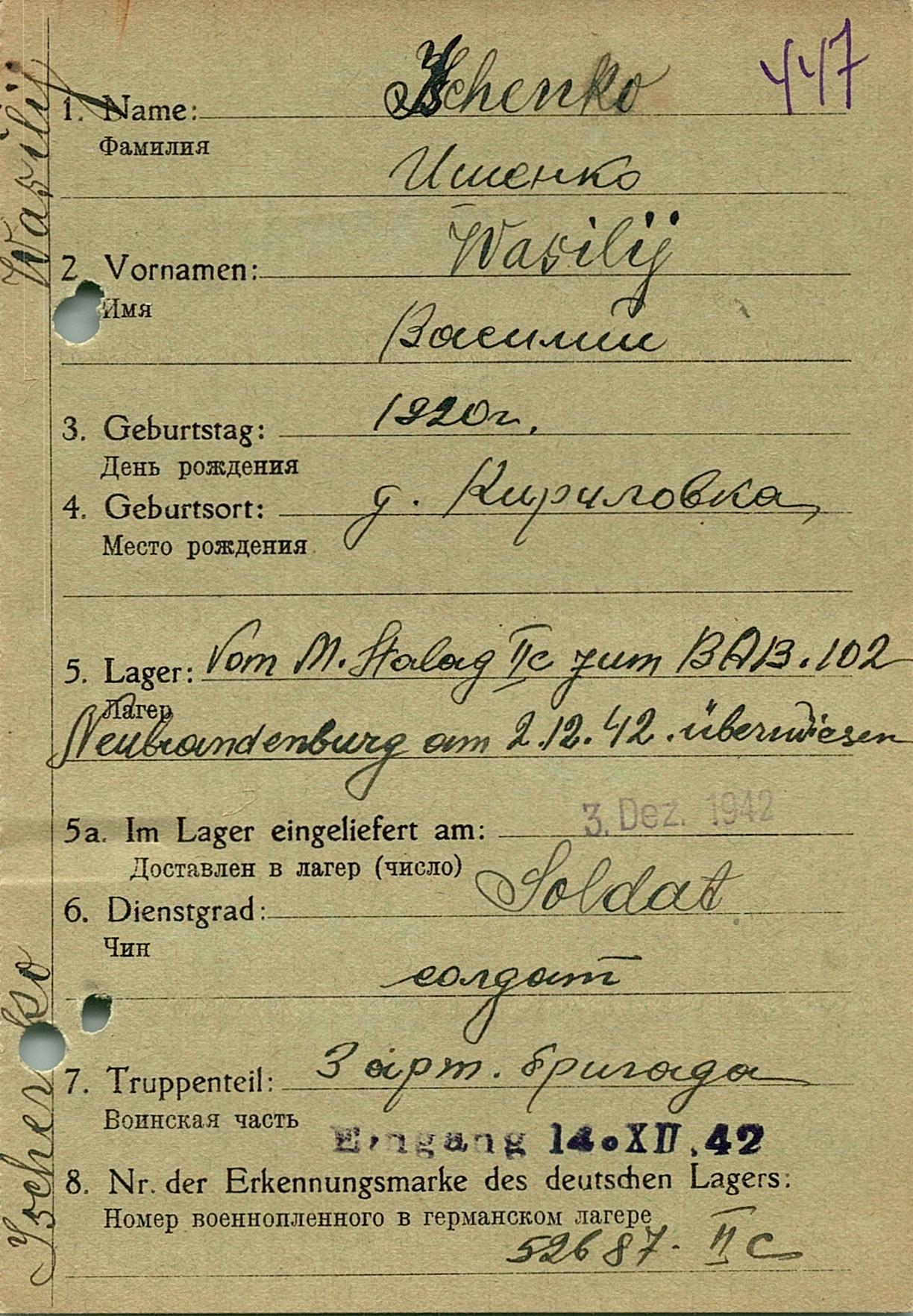 Военнопленные, трофейные карточки. Киевская обл.