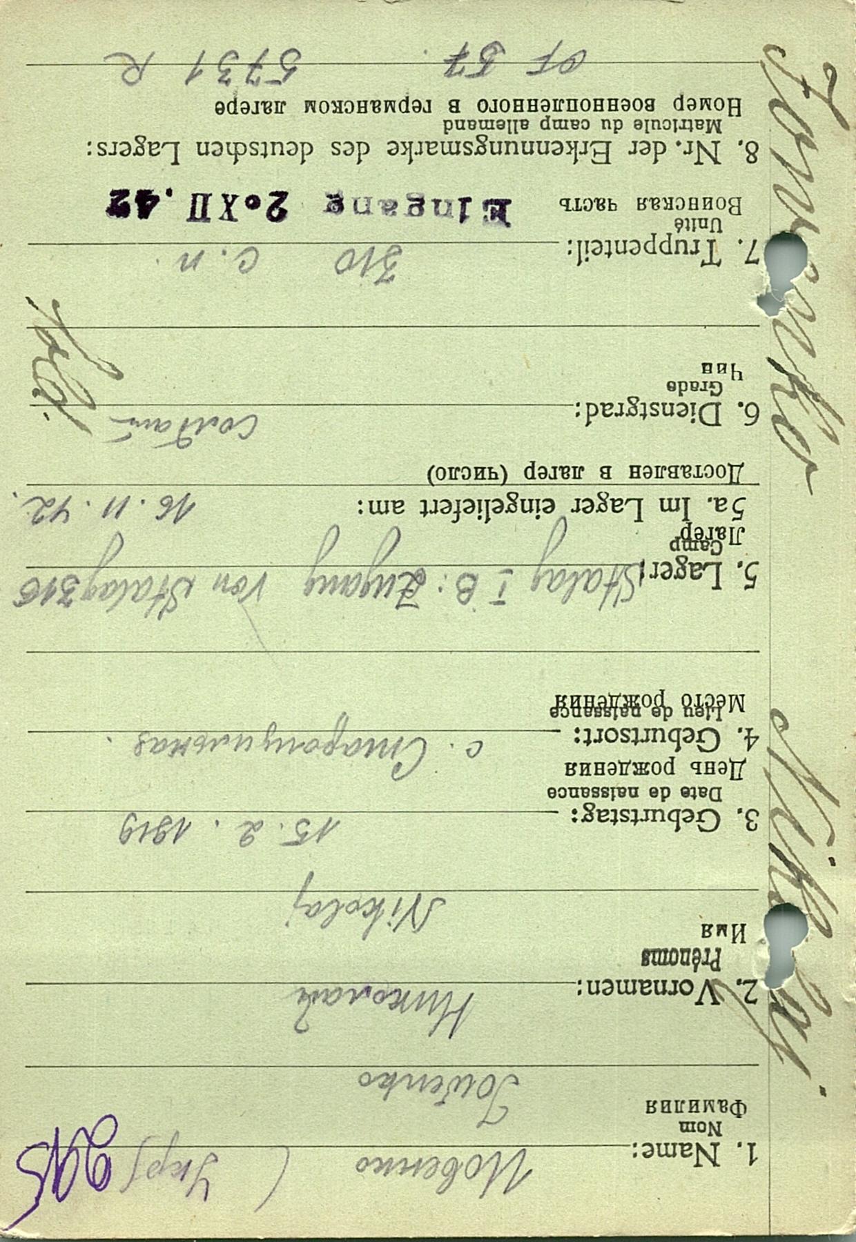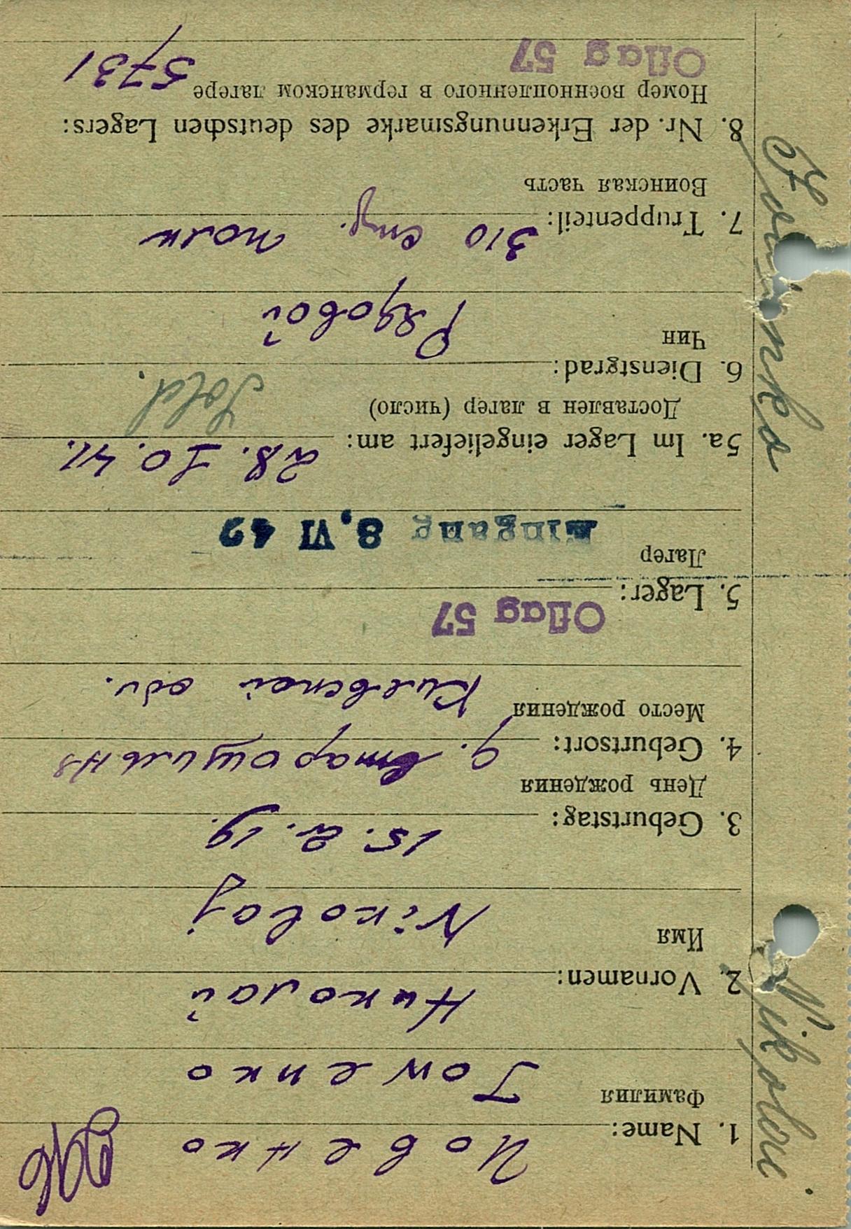 Военнопленные, трофейные карточки. Киевская обл.