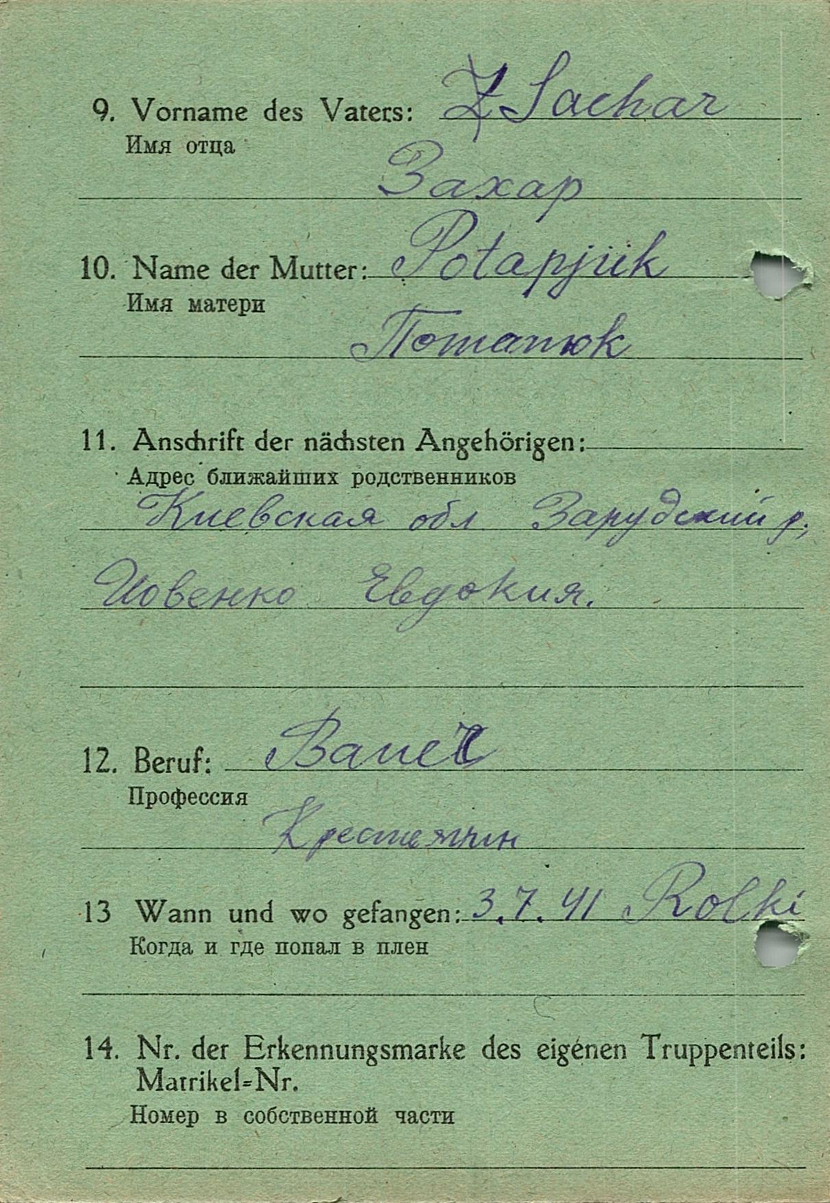 Военнопленные, трофейные карточки. Киевская обл.