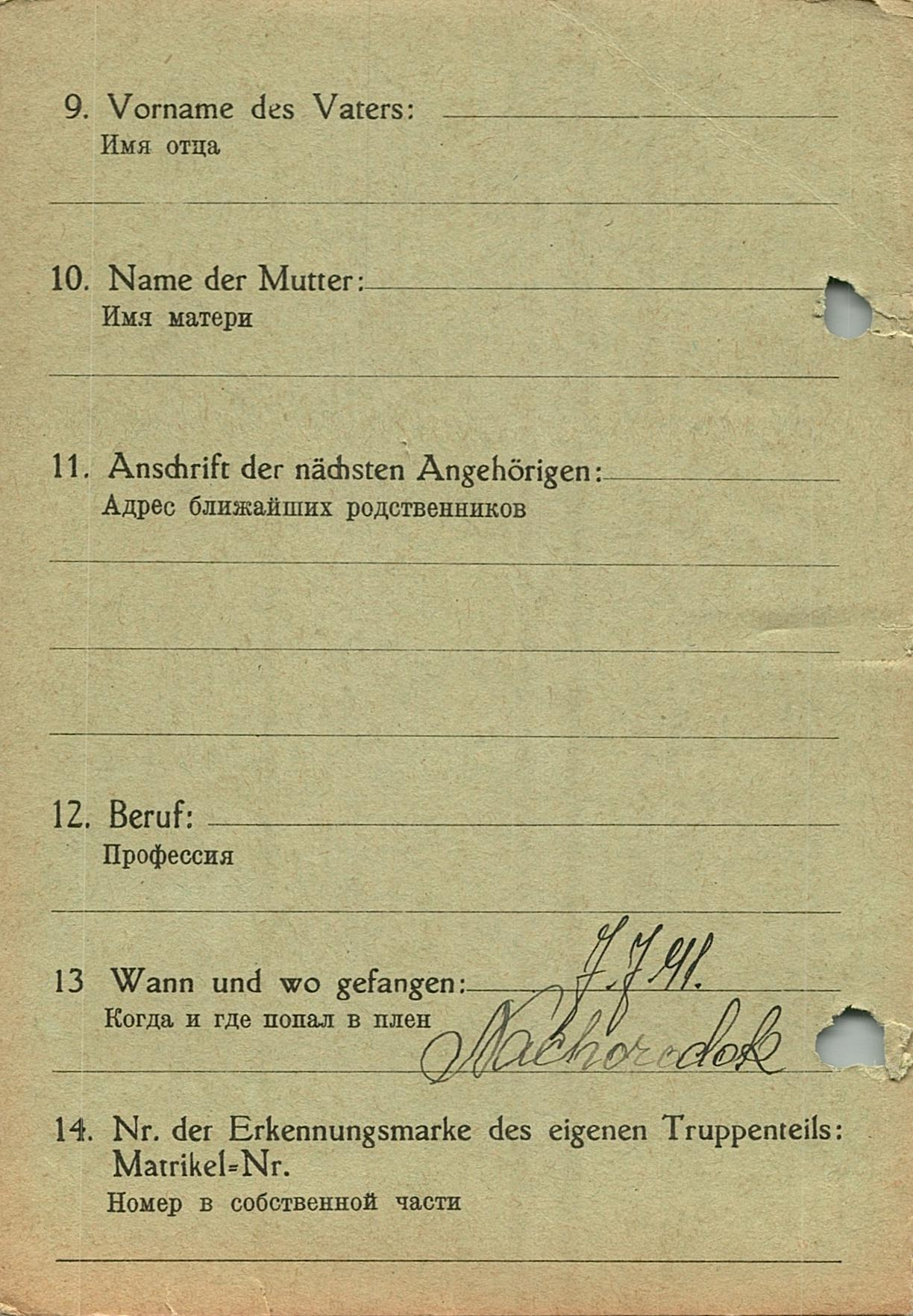 Военнопленные, трофейные карточки. Киевская обл.