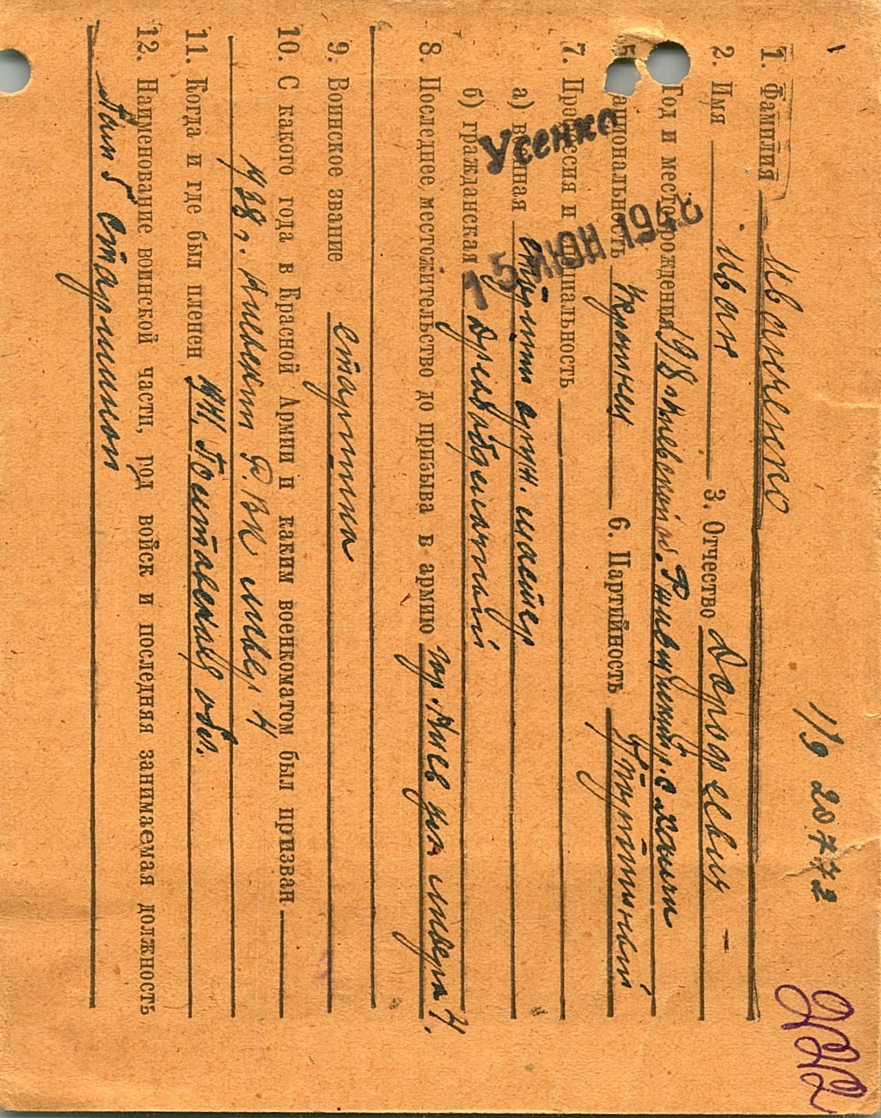Военнопленные, трофейные карточки. Киевская обл.