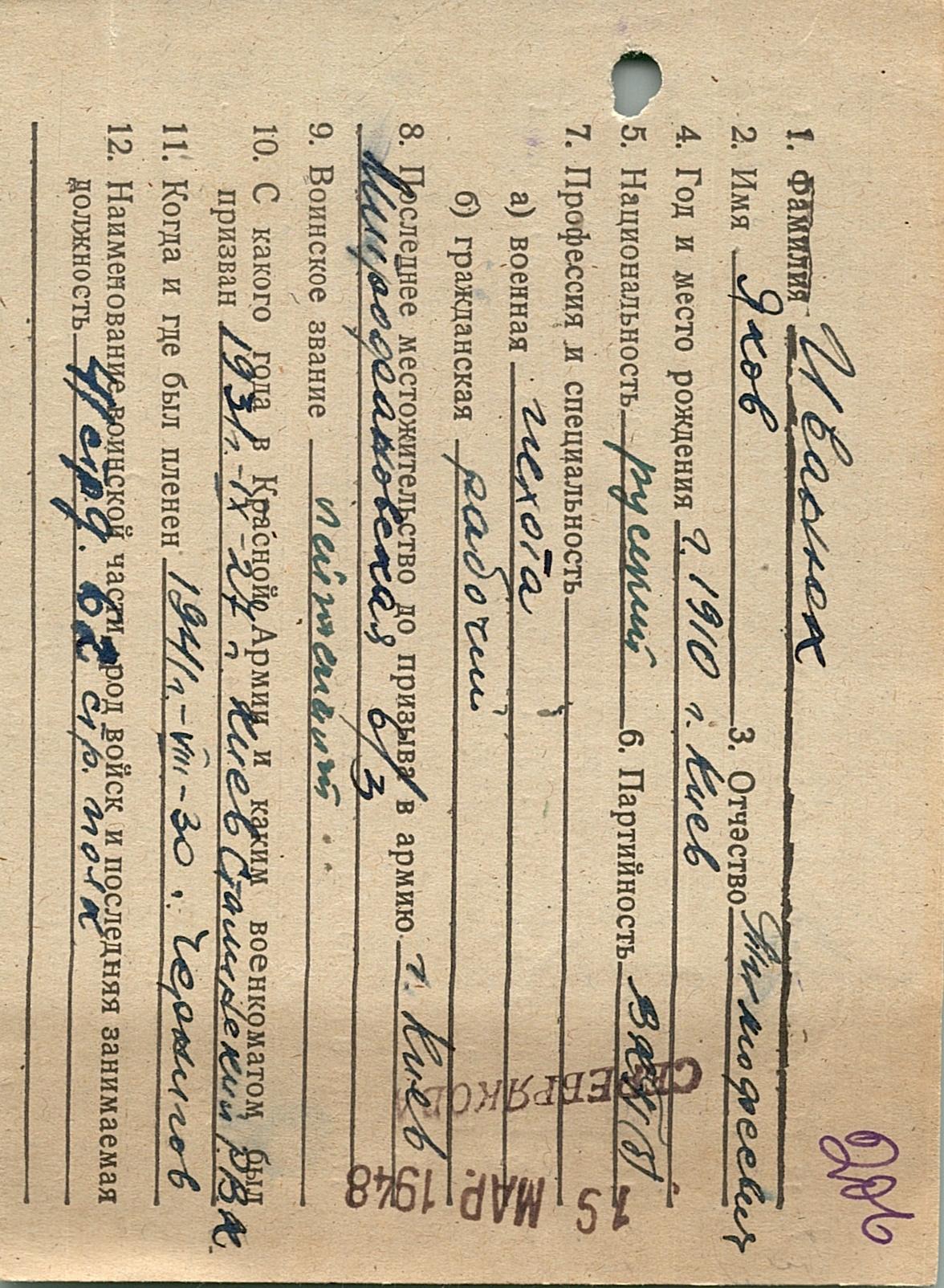 Военнопленные, трофейные карточки. Киевская обл.