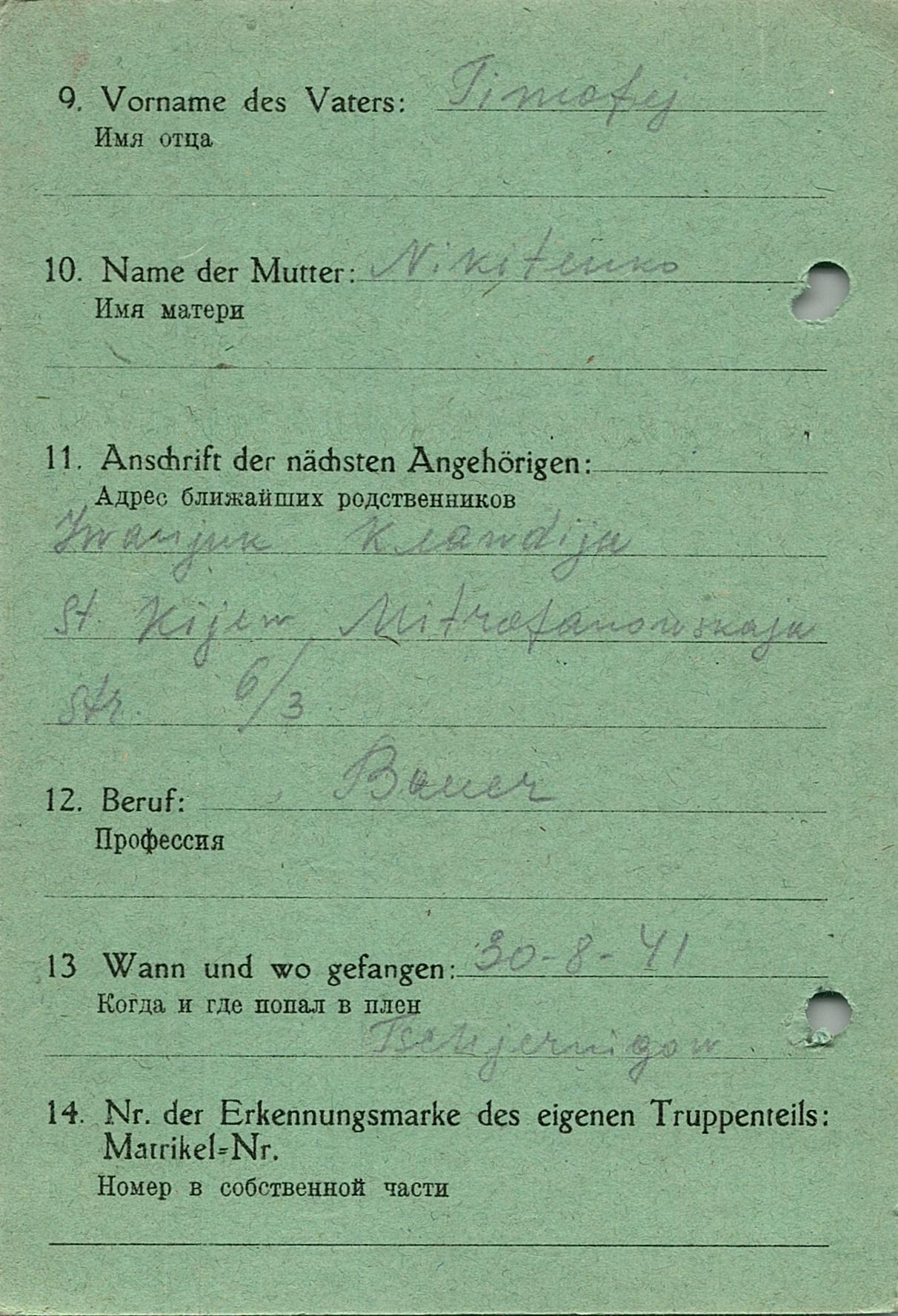 Военнопленные, трофейные карточки. Киевская обл.