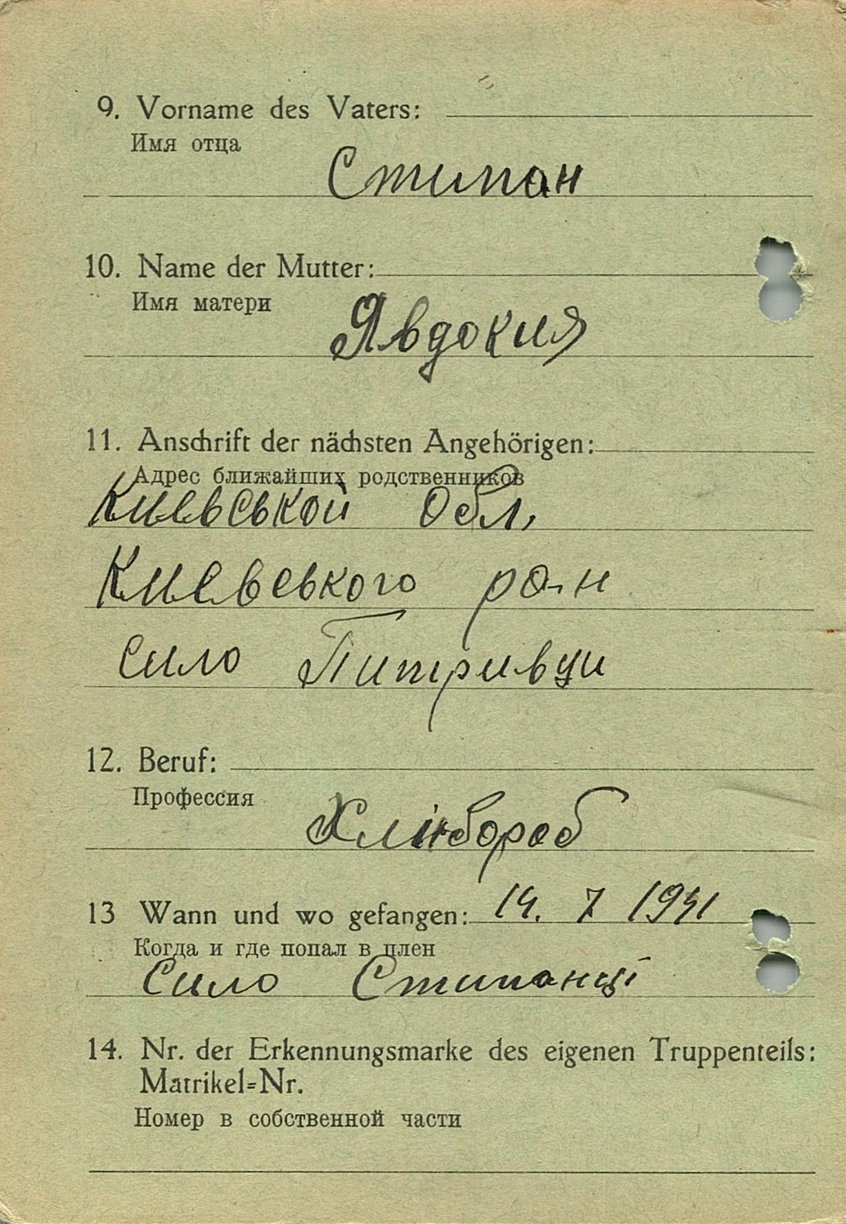 Военнопленные, трофейные карточки. Киевская обл.