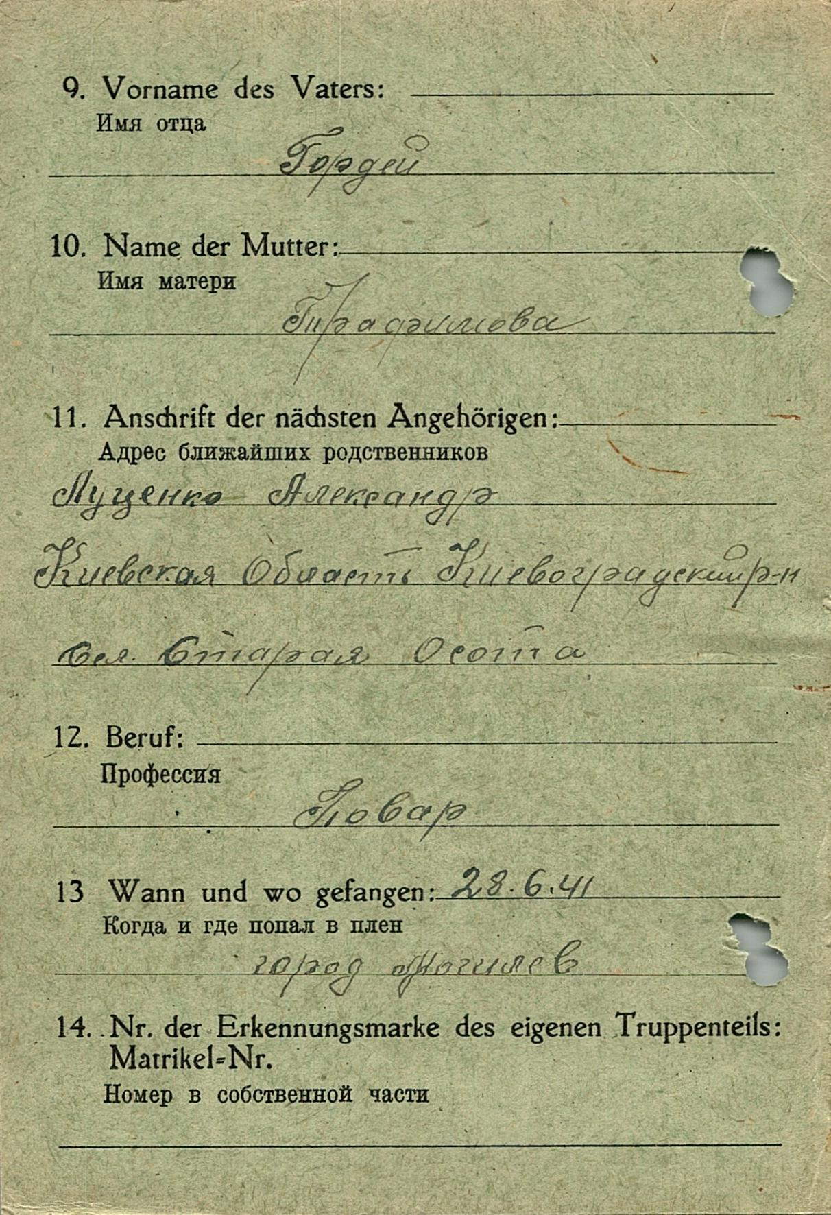 Военнопленные, трофейные карточки. Киевская обл.