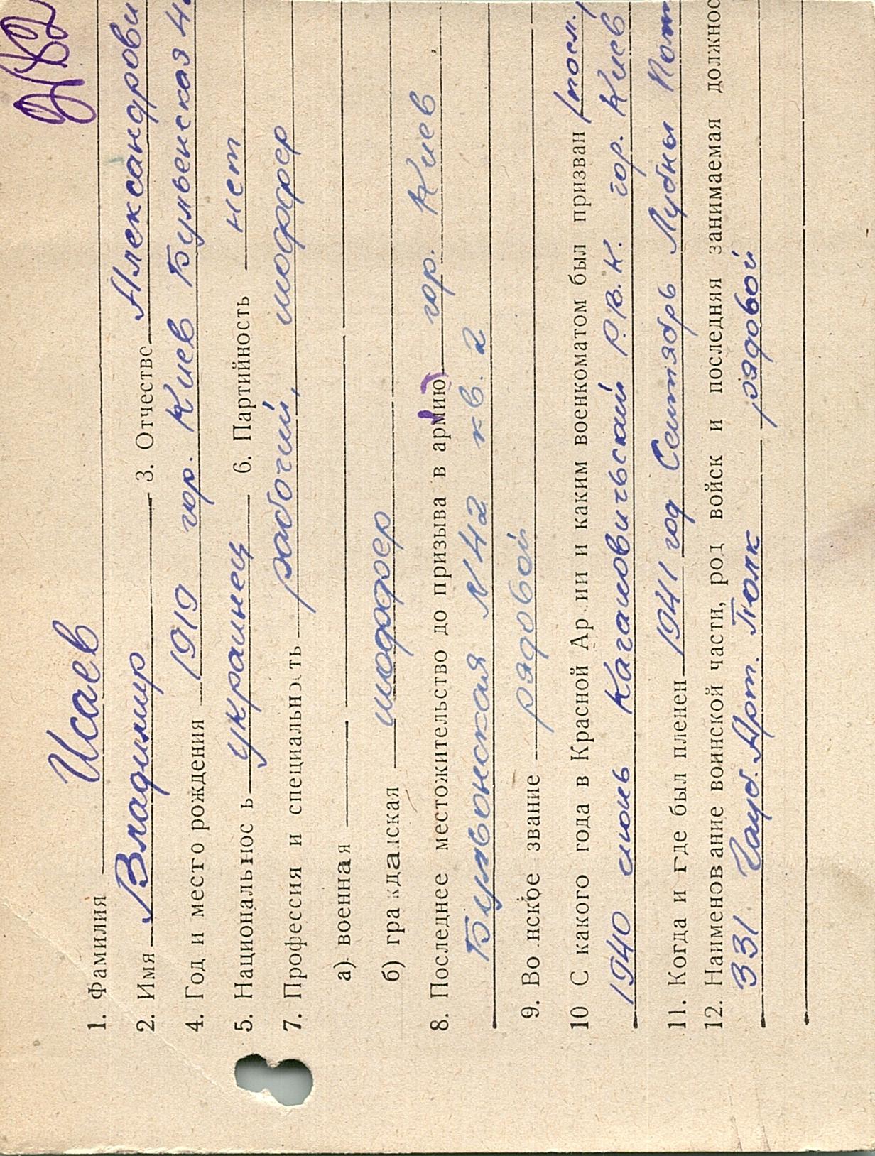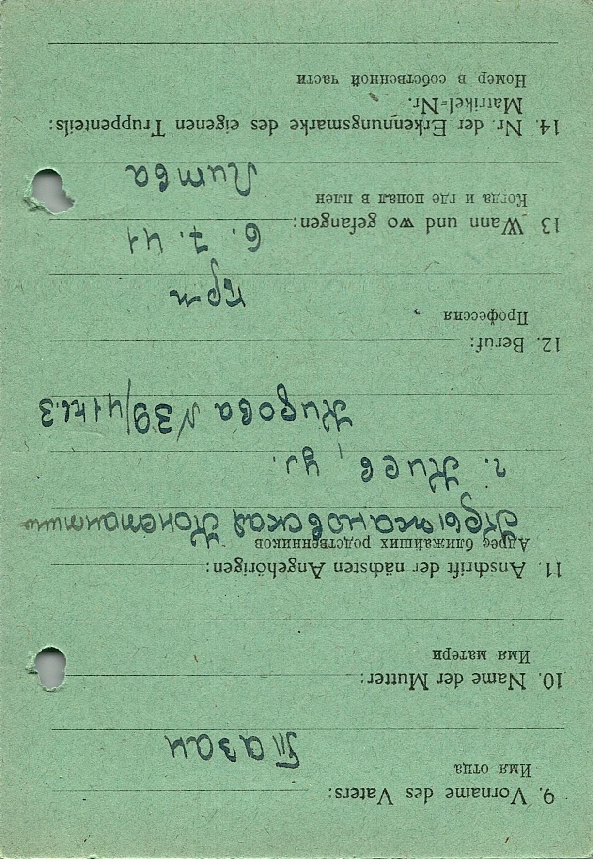 Военнопленные, трофейные карточки. Киевская обл.