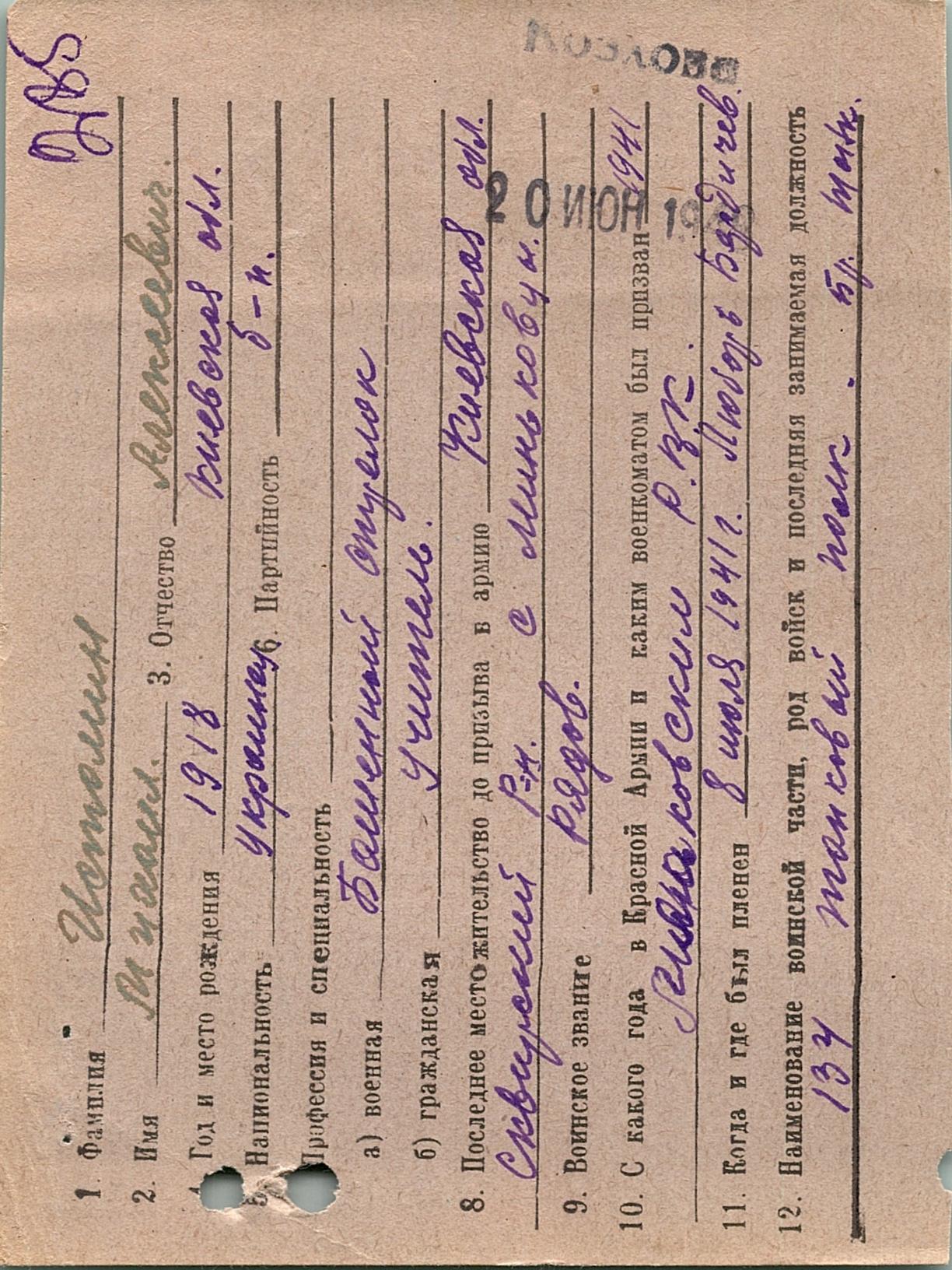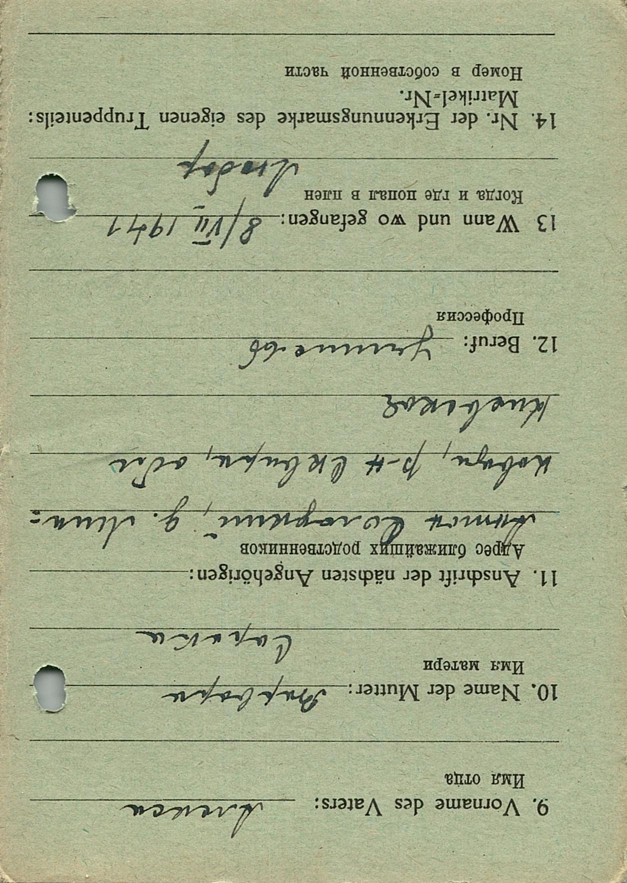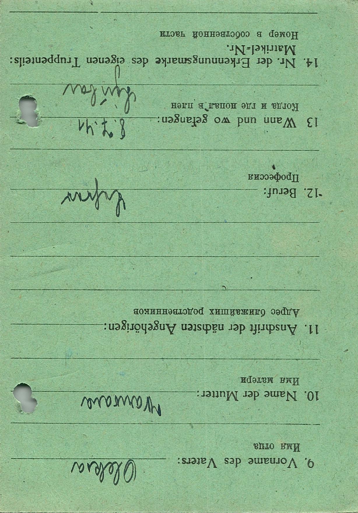 Военнопленные, трофейные карточки. Киевская обл.