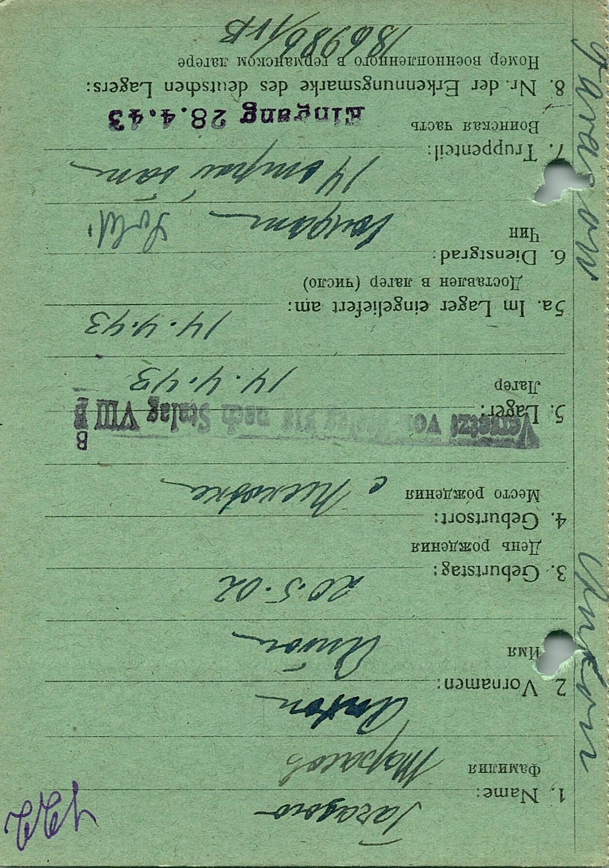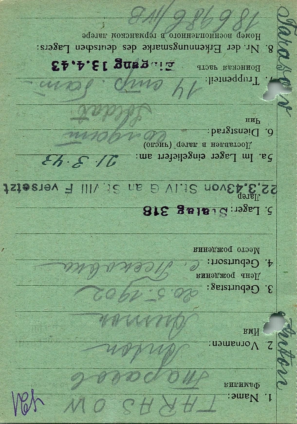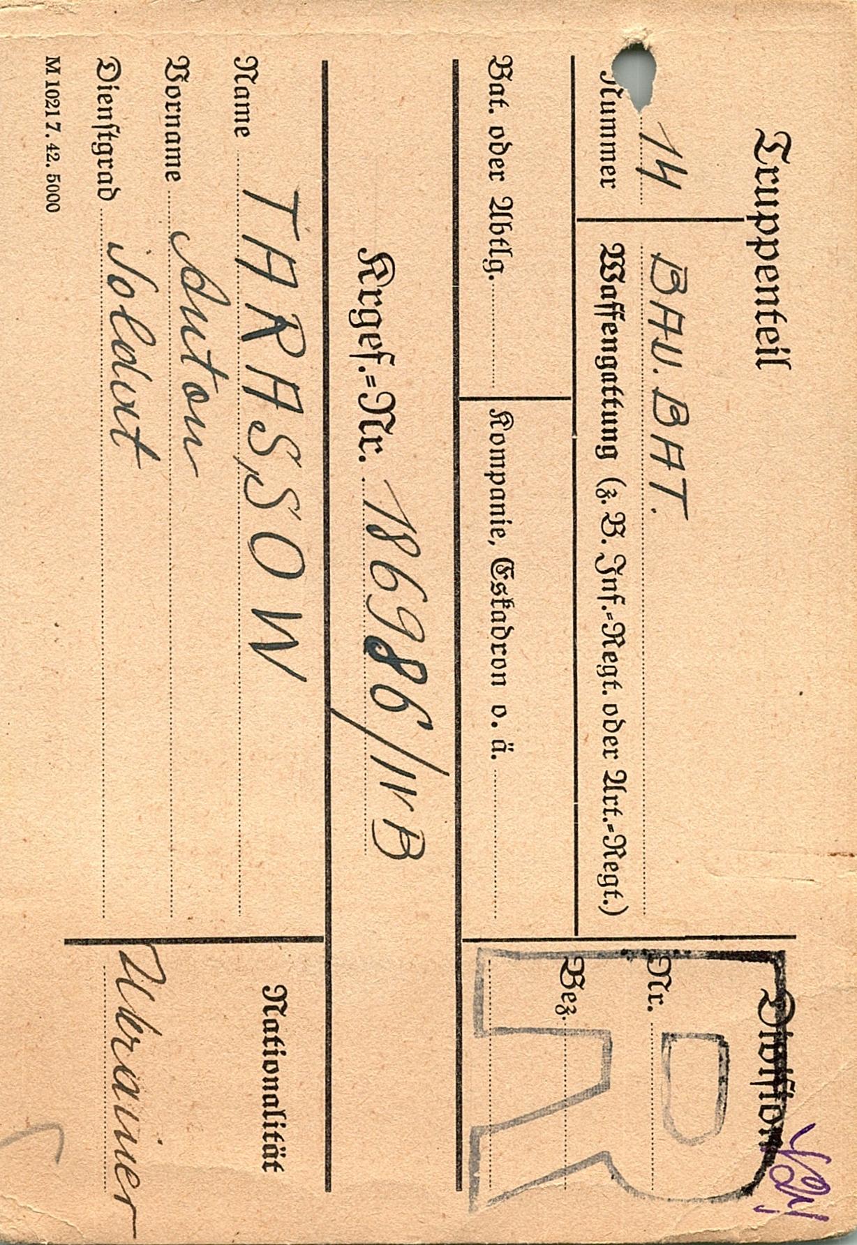 Военнопленные, трофейные карточки. Киевская обл.