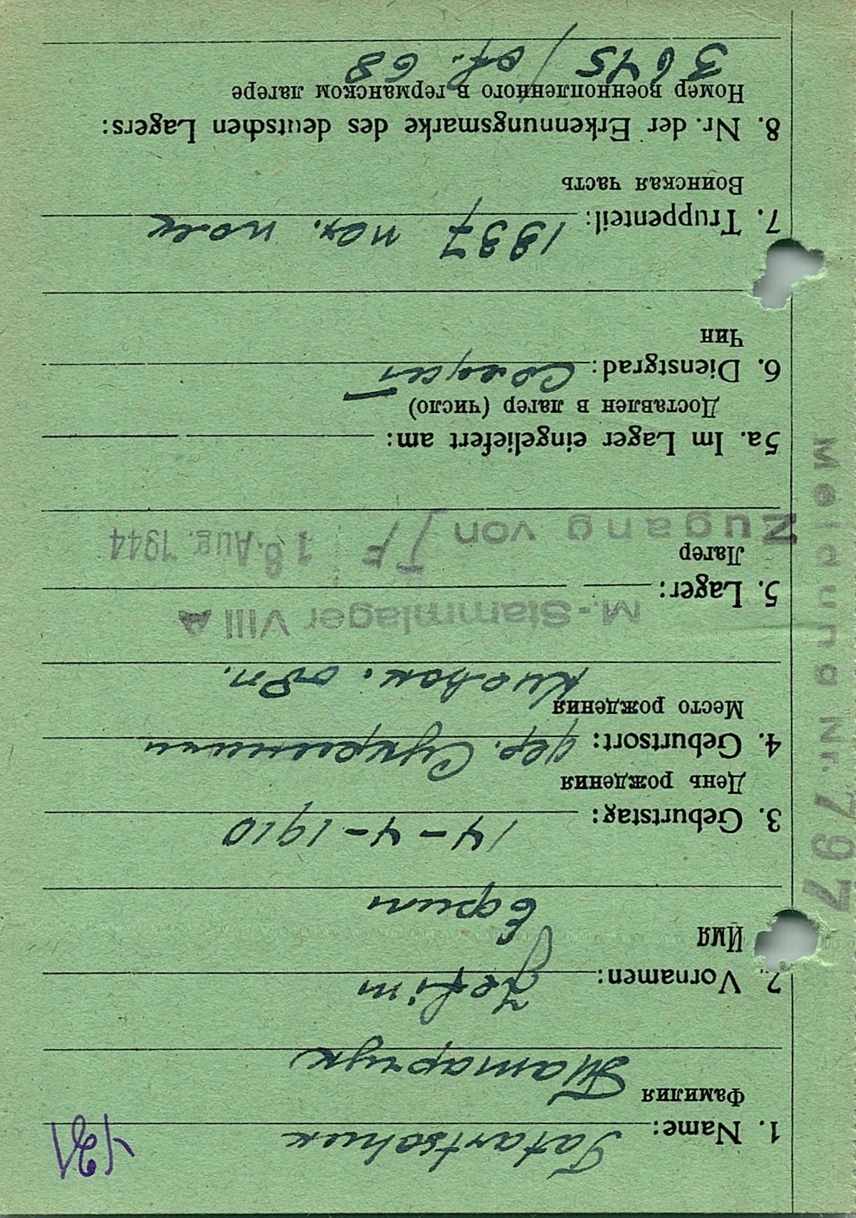 Военнопленные, трофейные карточки. Киевская обл.