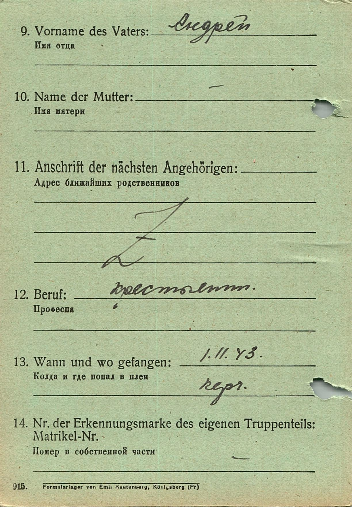 Военнопленные, трофейные карточки. Киевская обл.