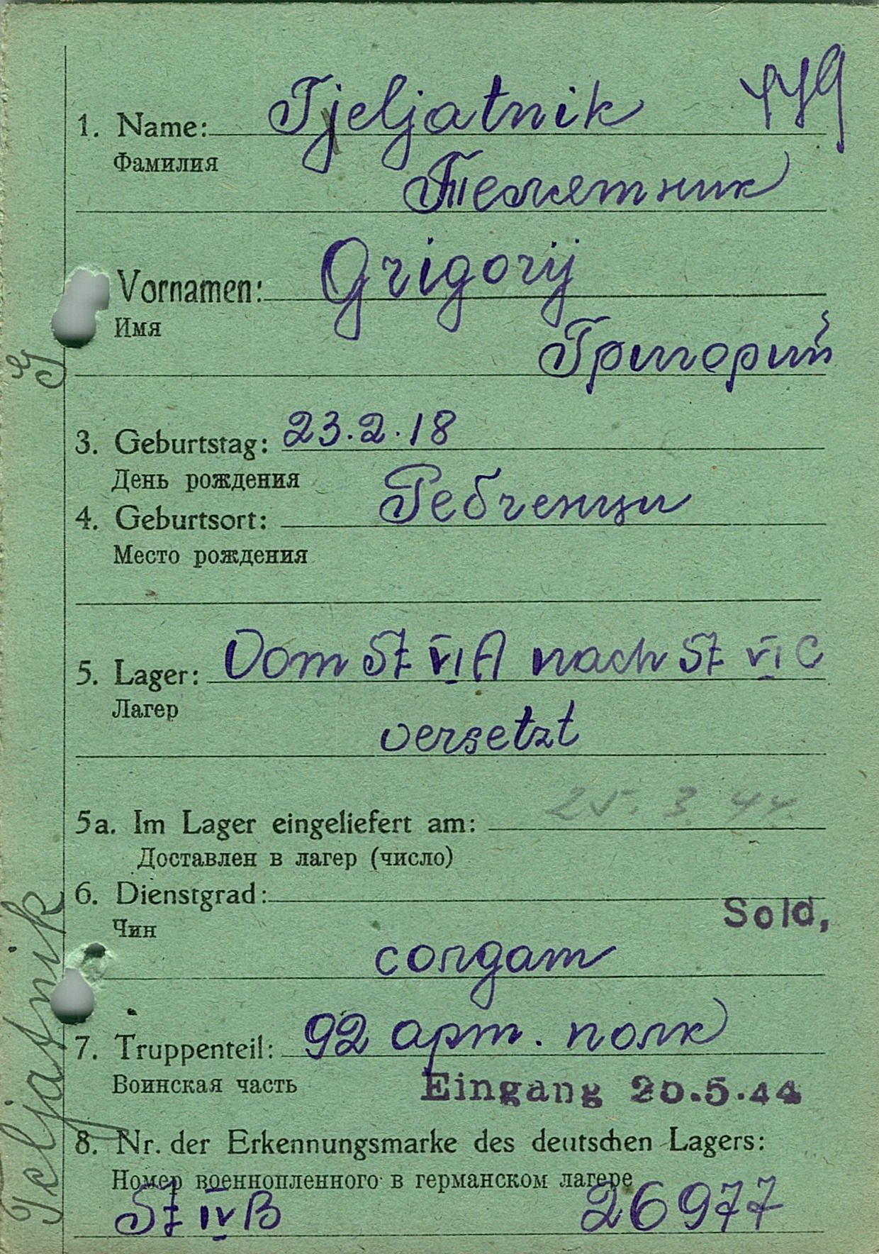 Военнопленные, трофейные карточки. Киевская обл.