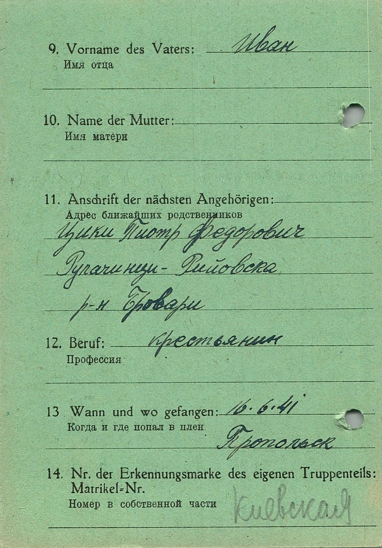 Военнопленные, трофейные карточки. Киевская обл.