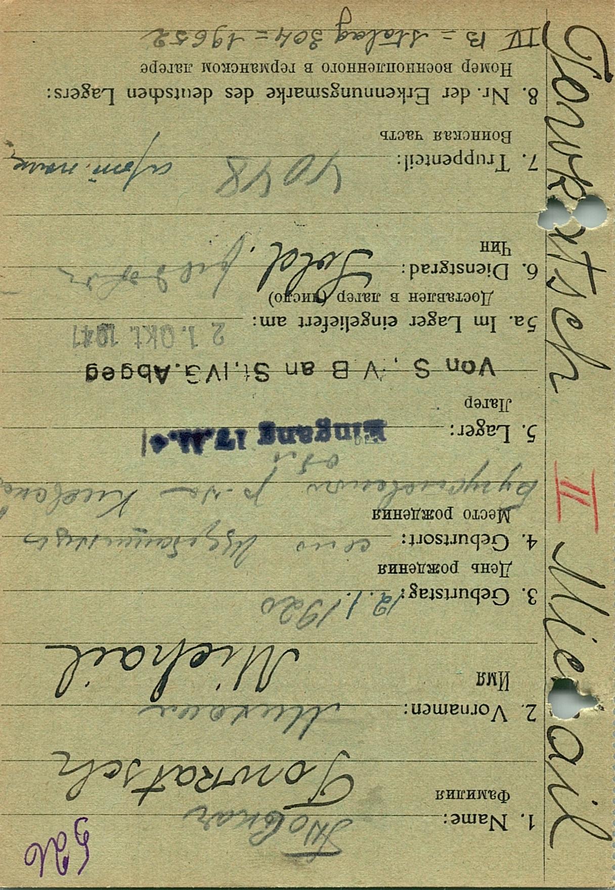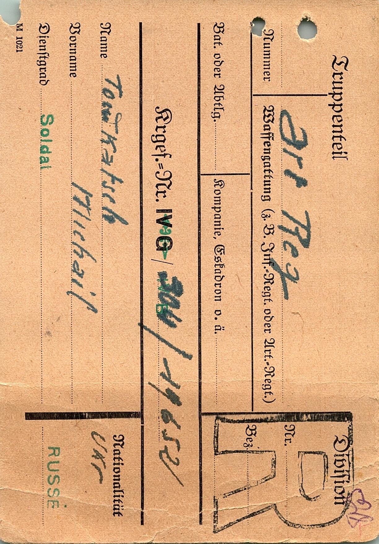Военнопленные, трофейные карточки. Киевская обл.