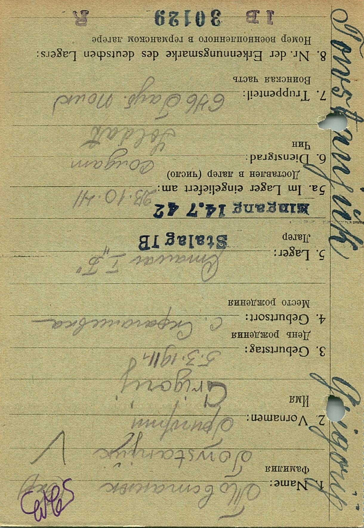 Военнопленные, трофейные карточки. Киевская обл.
