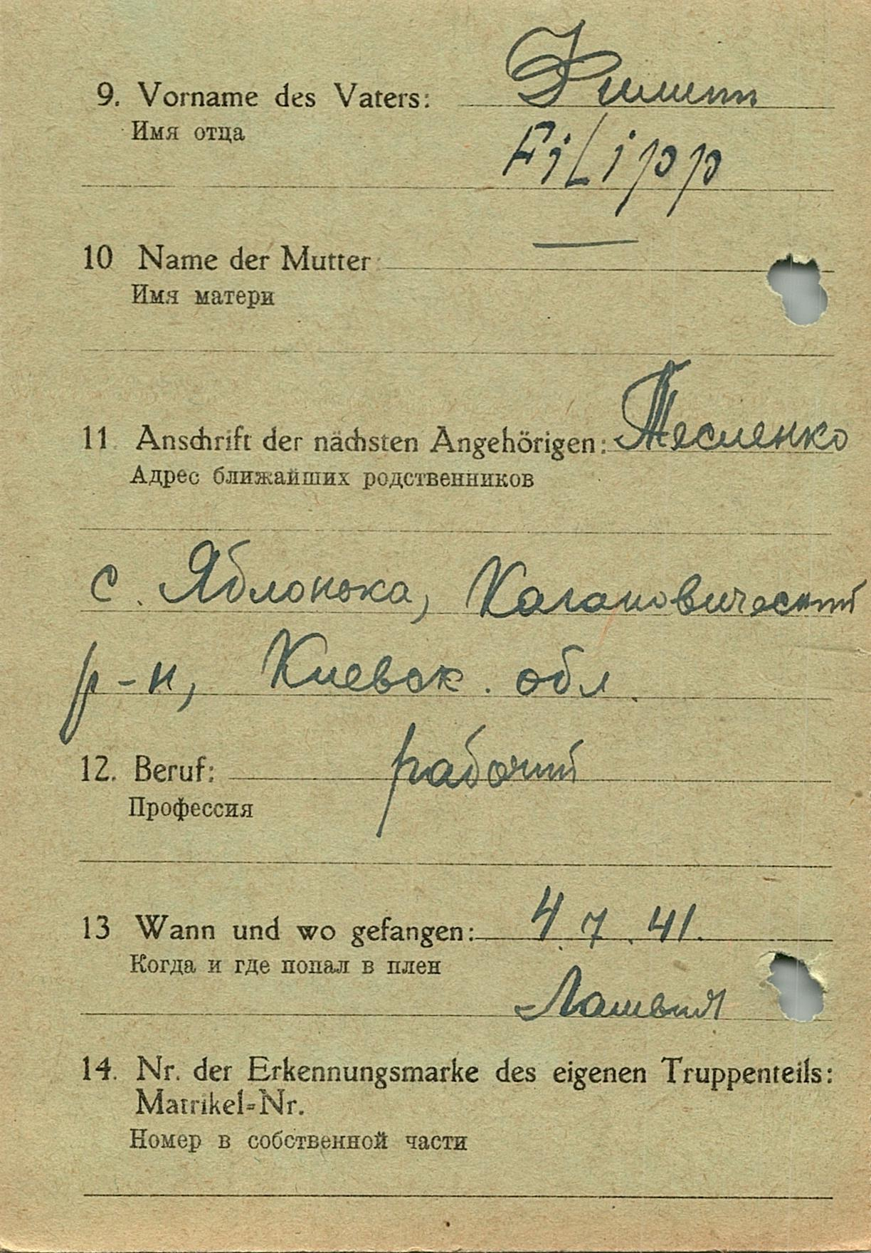 Военнопленные, трофейные карточки. Киевская обл.