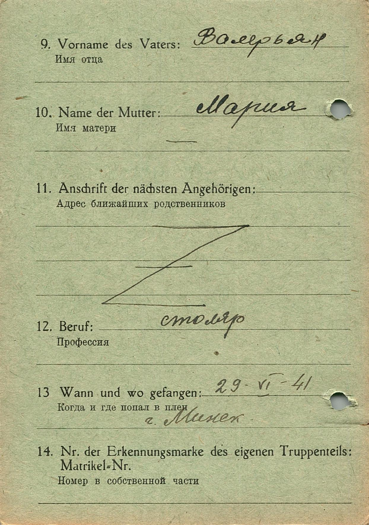 Военнопленные, трофейные карточки. Киевская обл.