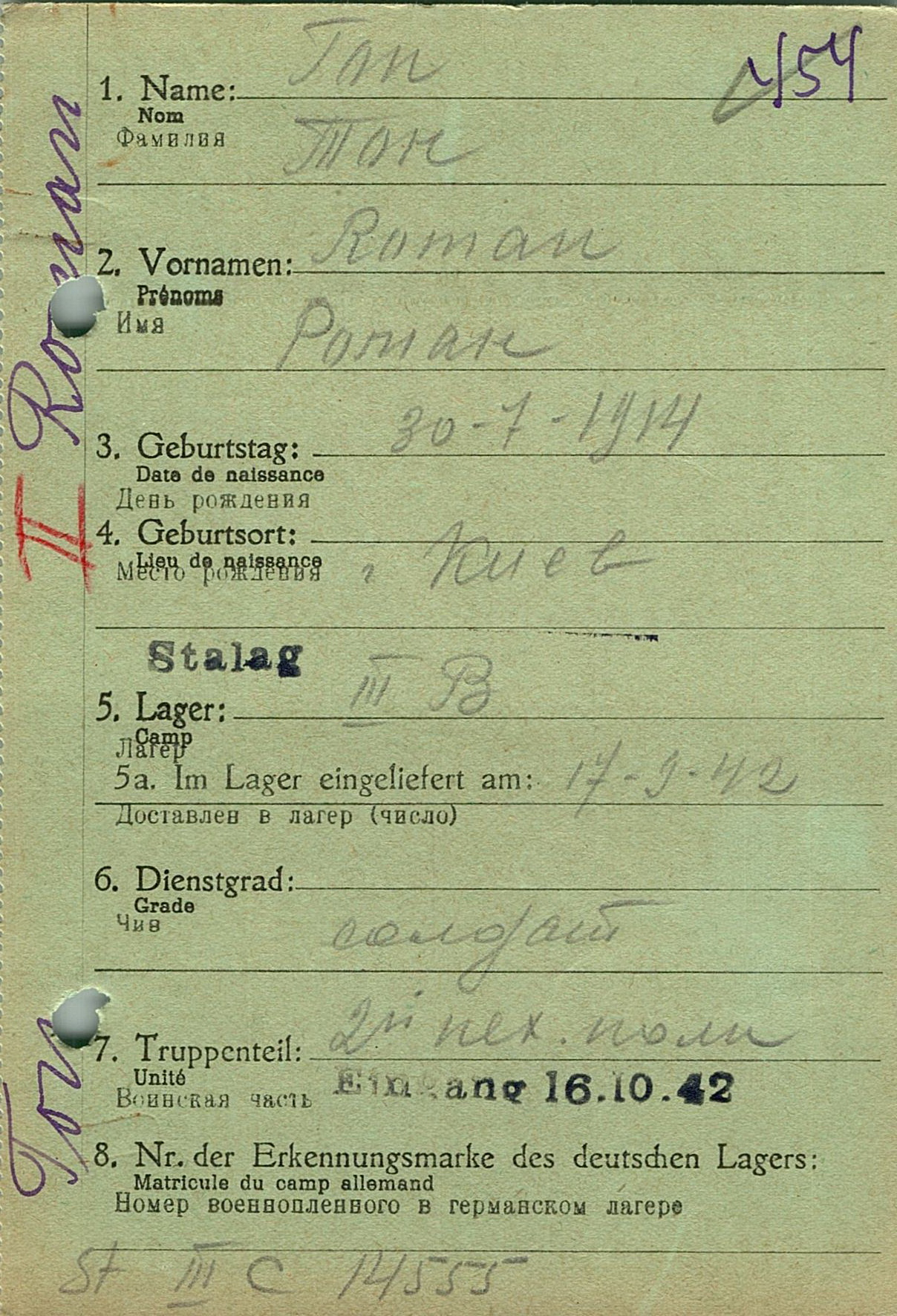 Военнопленные, трофейные карточки. Киевская обл.