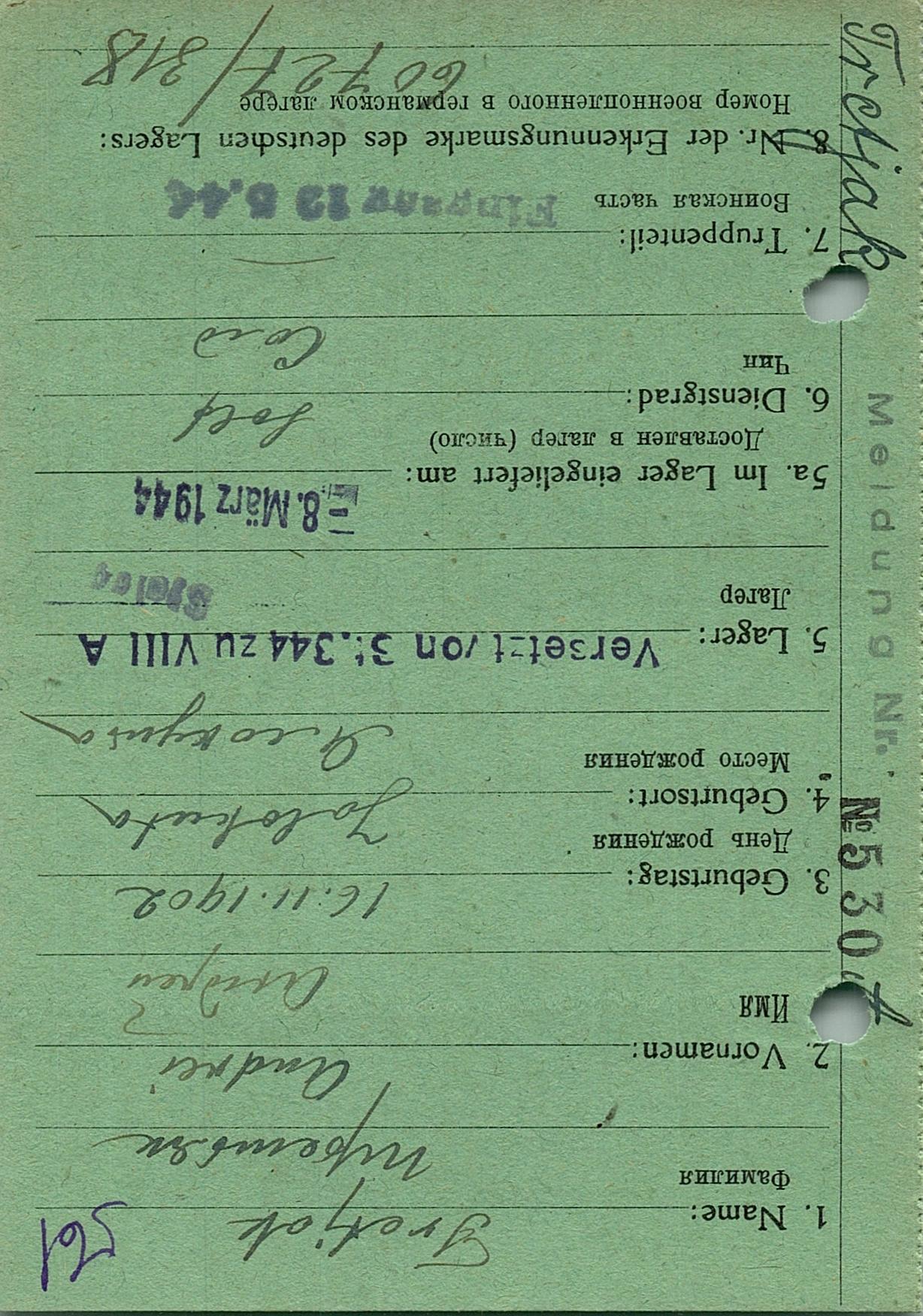 Военнопленные, трофейные карточки. Киевская обл.