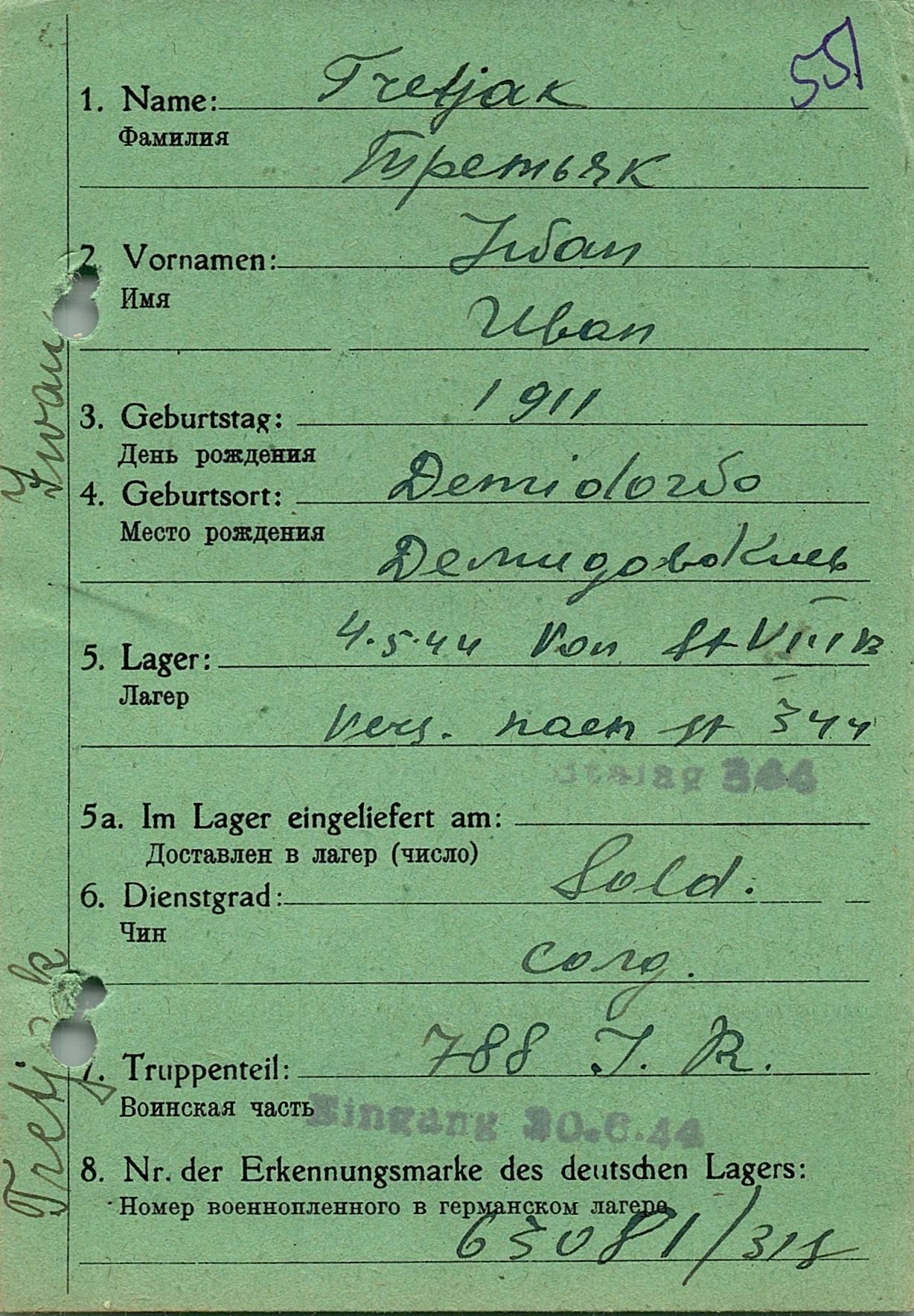 Военнопленные, трофейные карточки. Киевская обл.