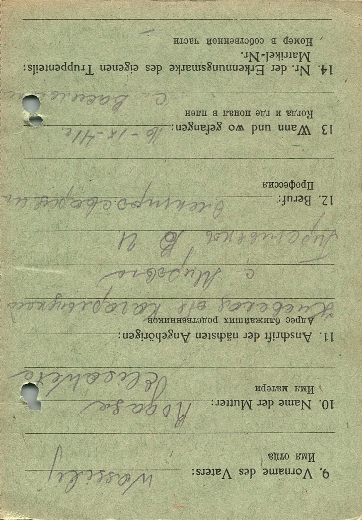 Военнопленные, трофейные карточки. Киевская обл.