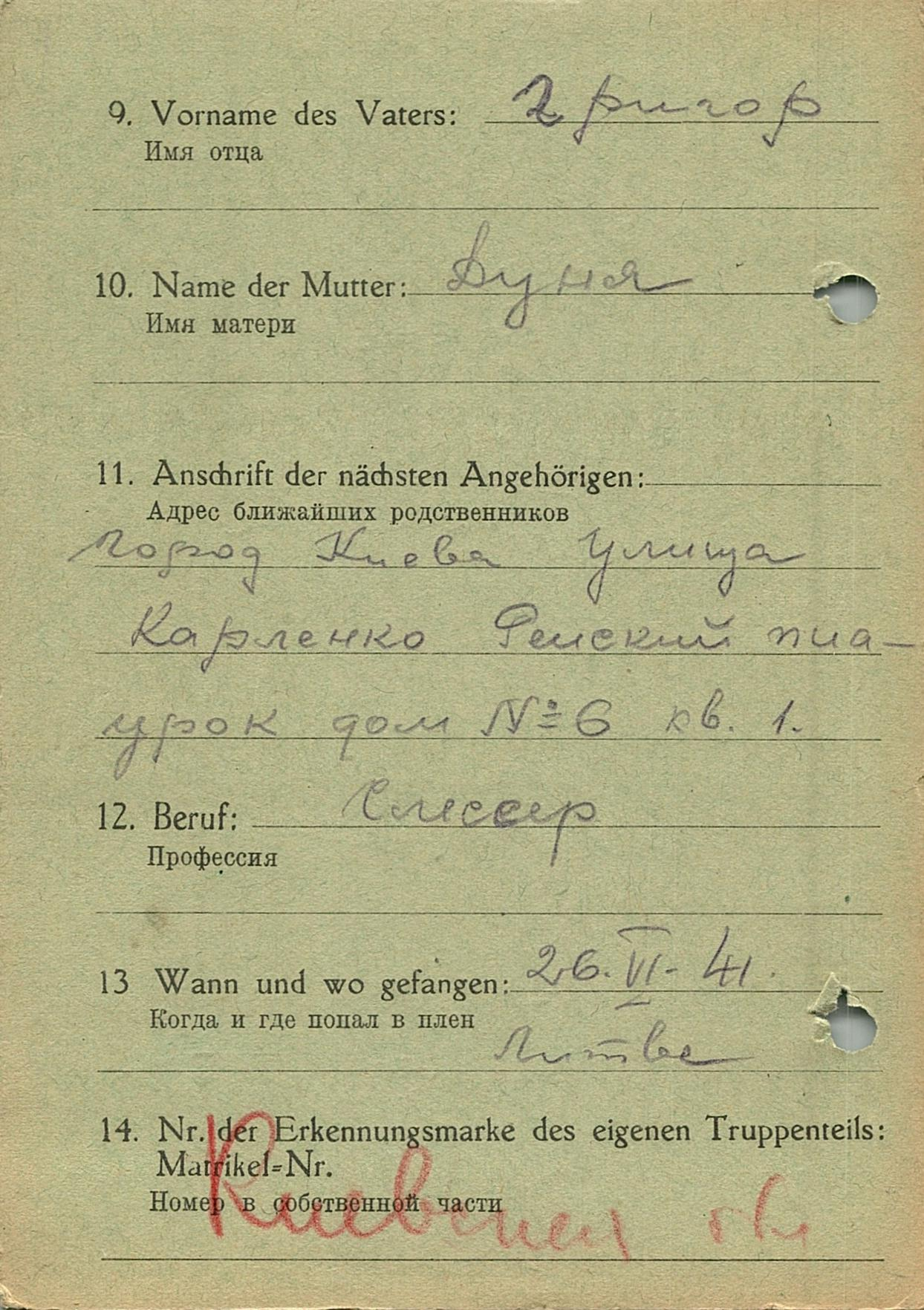 Военнопленные, трофейные карточки. Киевская обл.