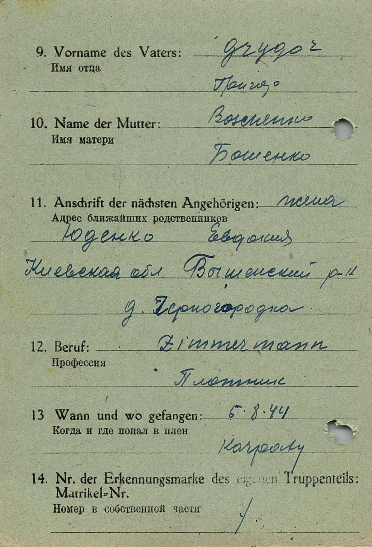 Военнопленные, трофейные карточки. Киевская обл.