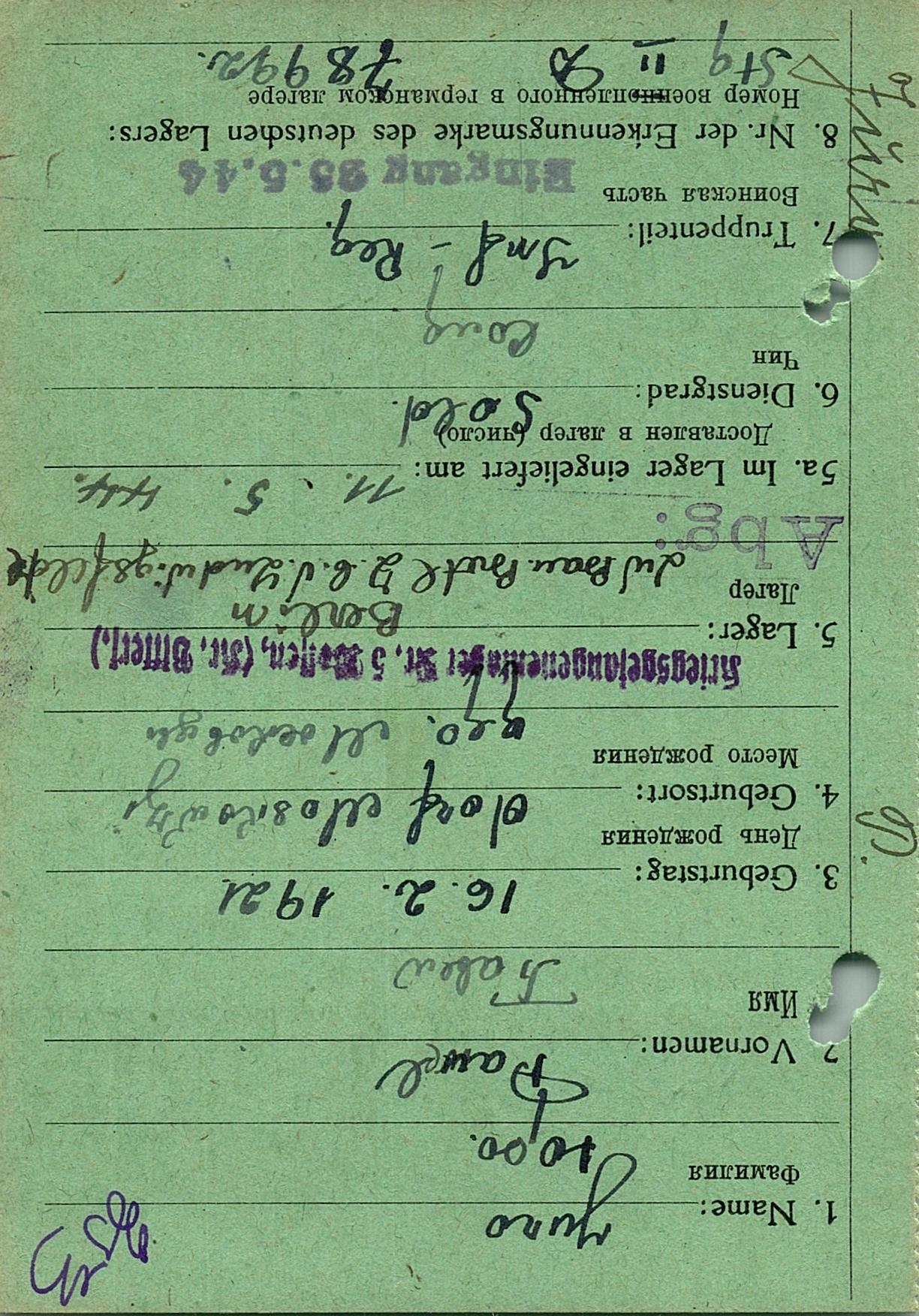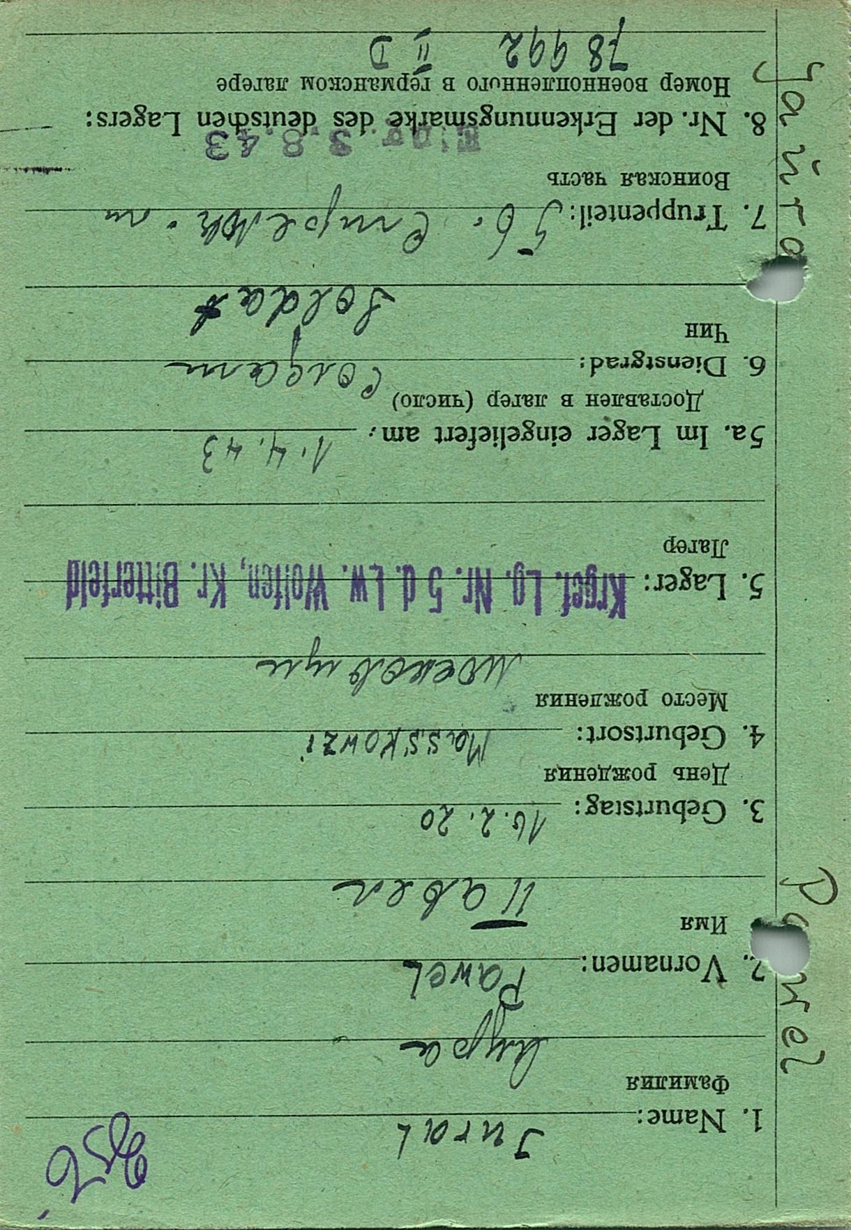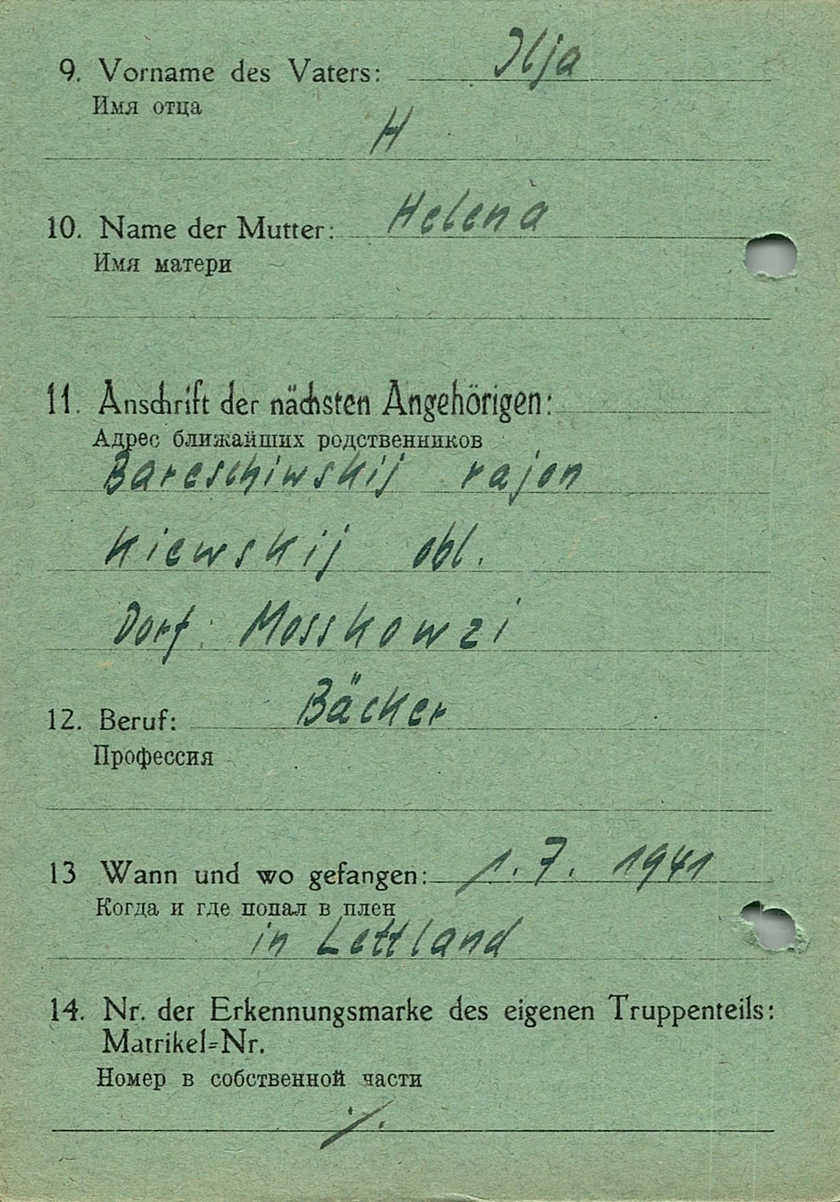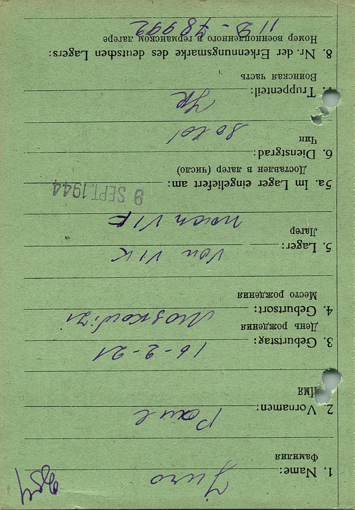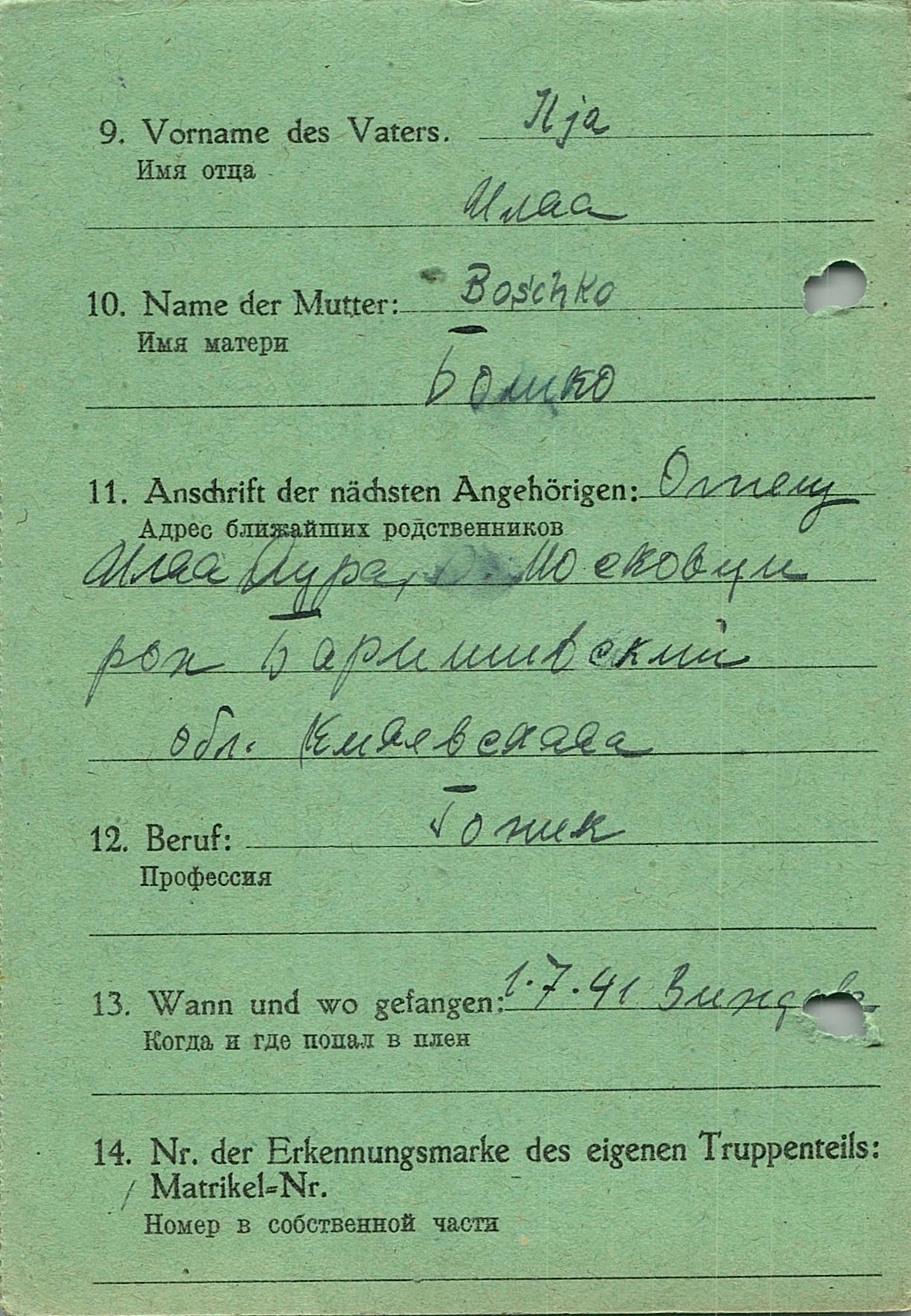 Военнопленные, трофейные карточки. Киевская обл.