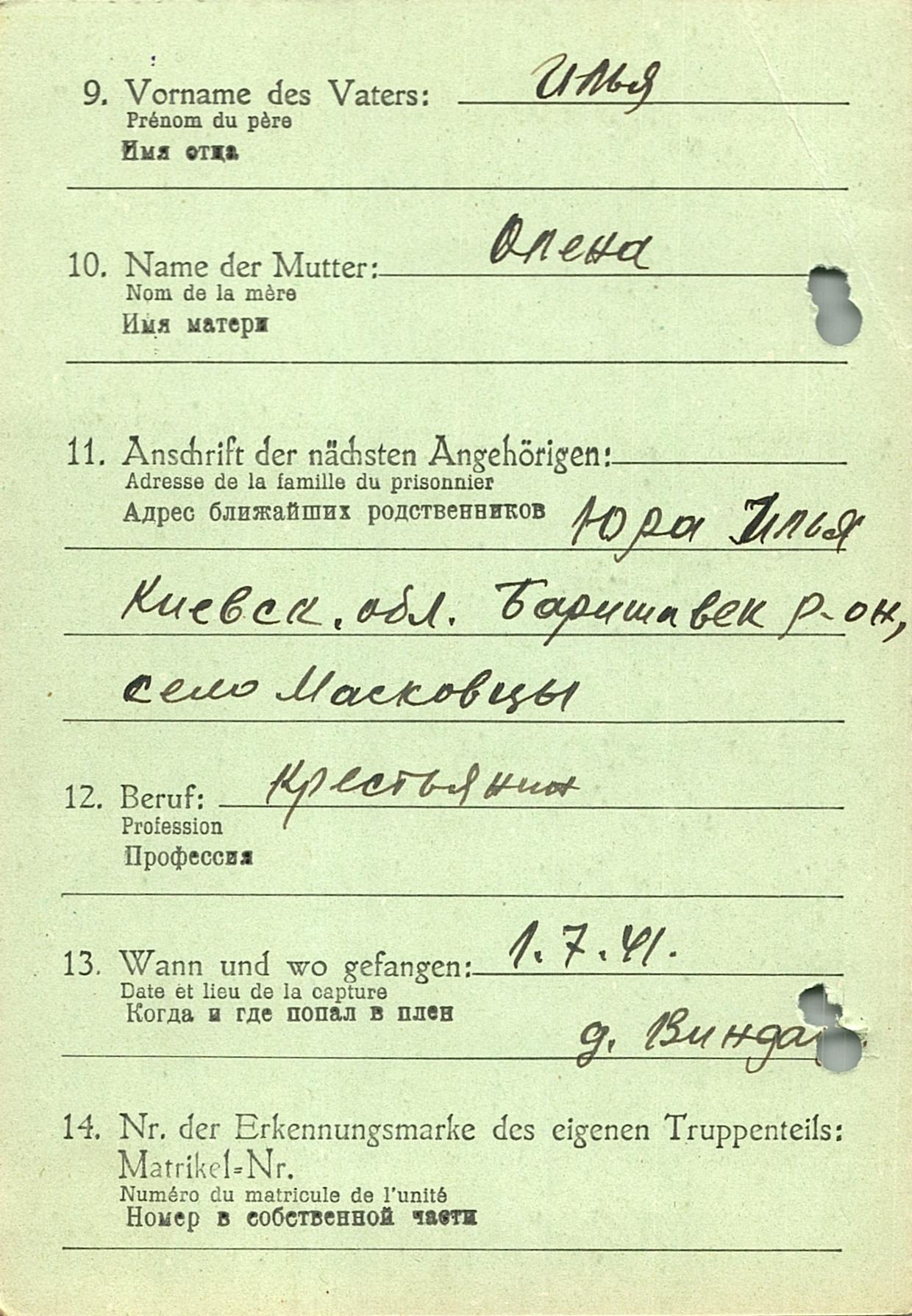 Военнопленные, трофейные карточки. Киевская обл.
