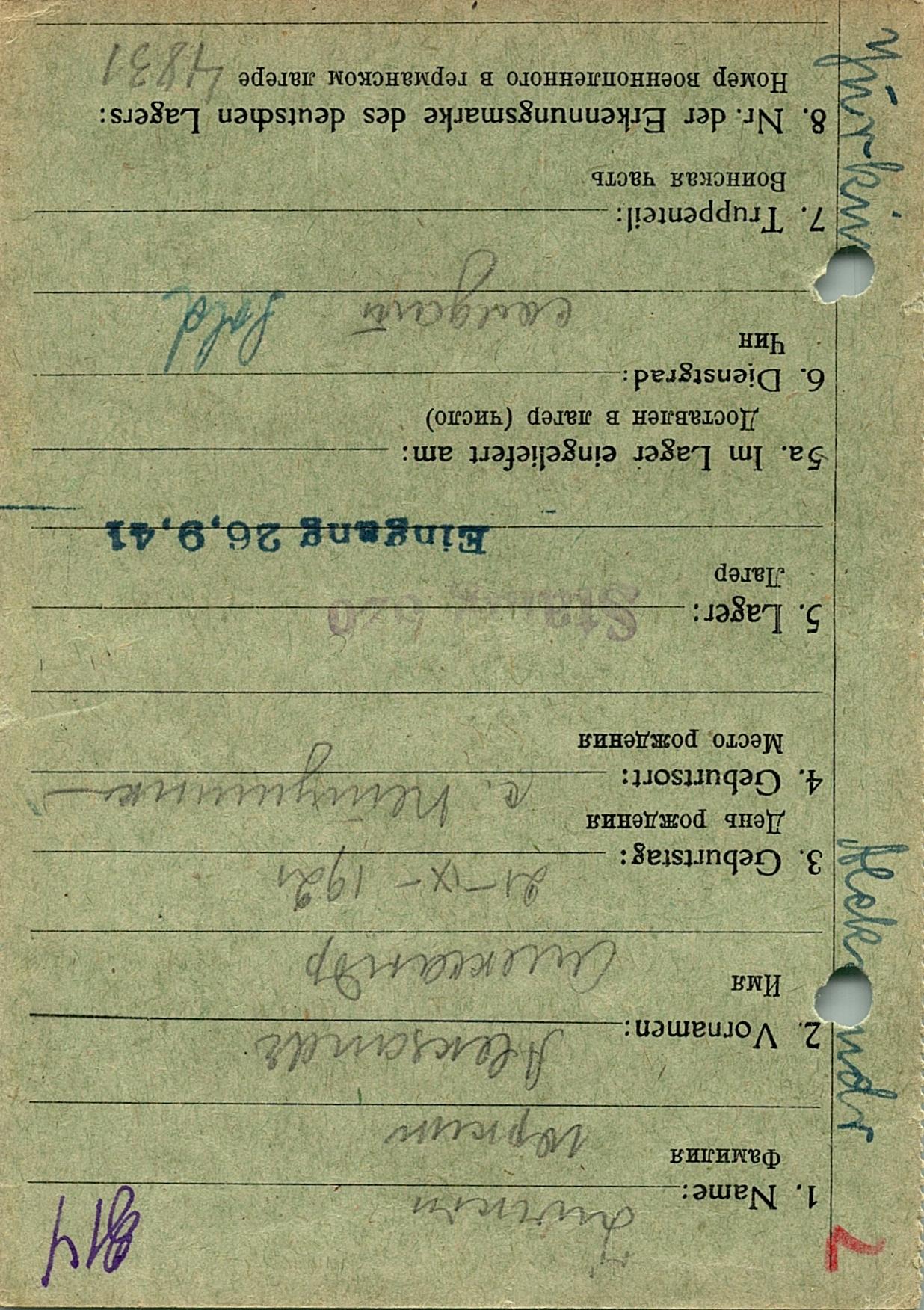 Военнопленные, трофейные карточки. Киевская обл.