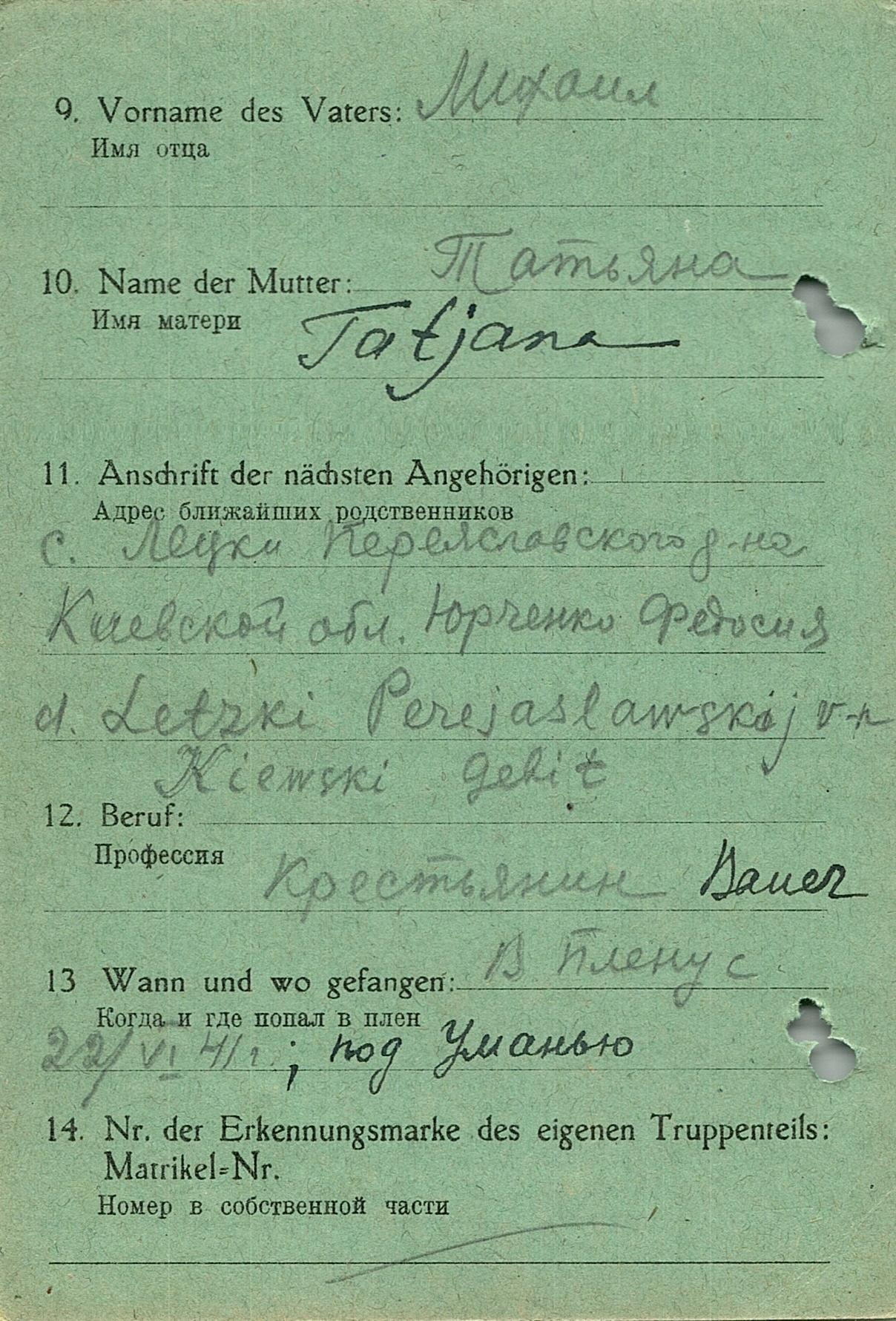 Военнопленные, трофейные карточки. Киевская обл.