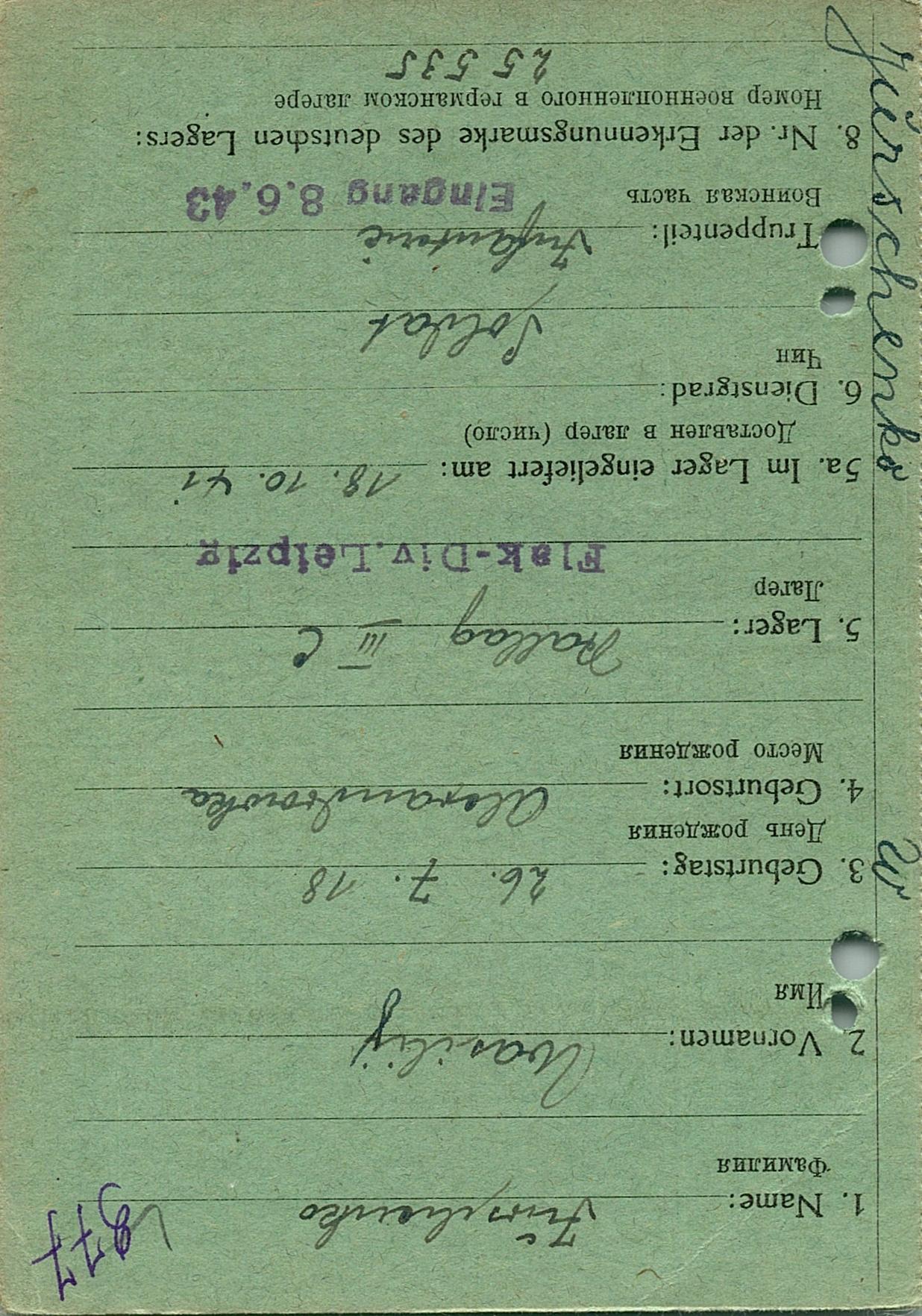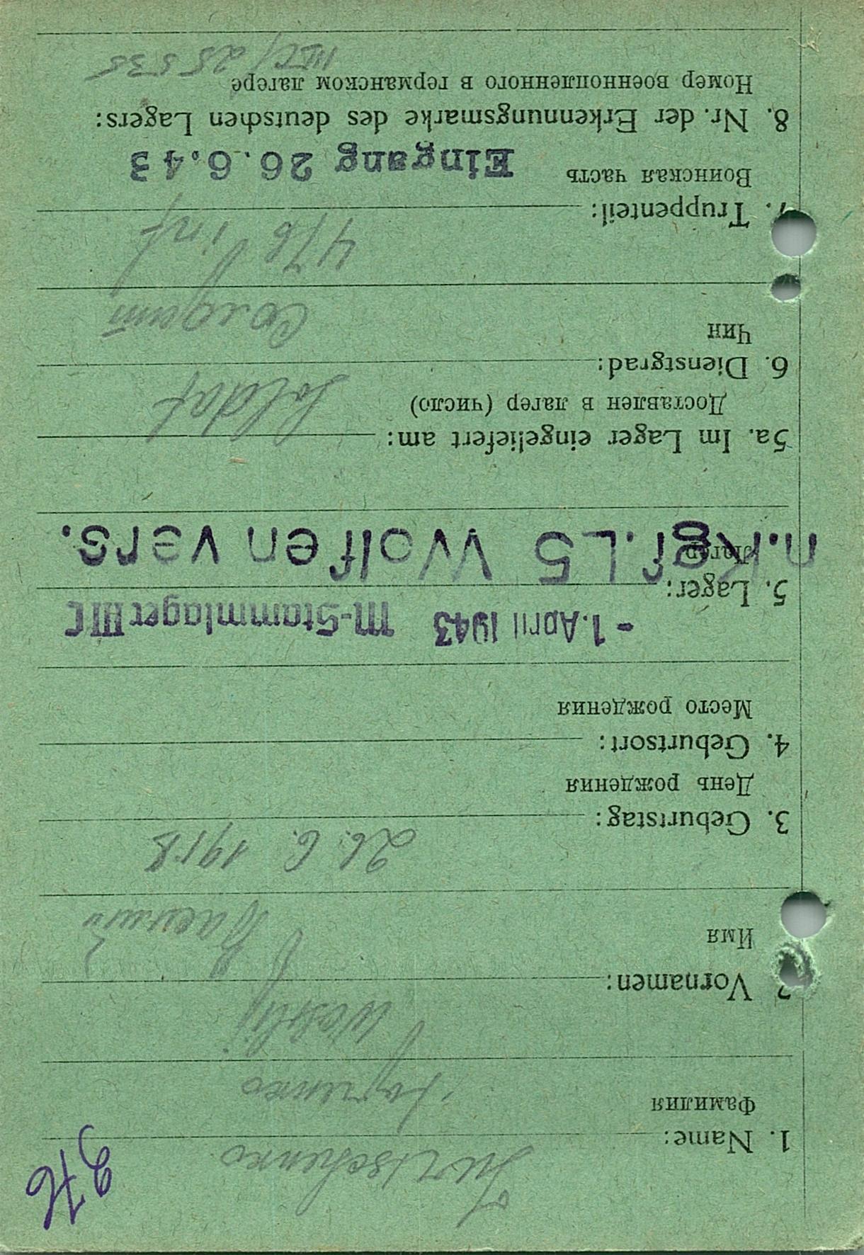 Военнопленные, трофейные карточки. Киевская обл.