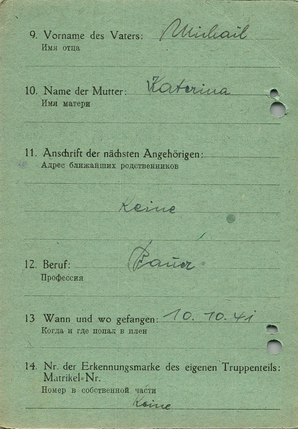 Военнопленные, трофейные карточки. Киевская обл.