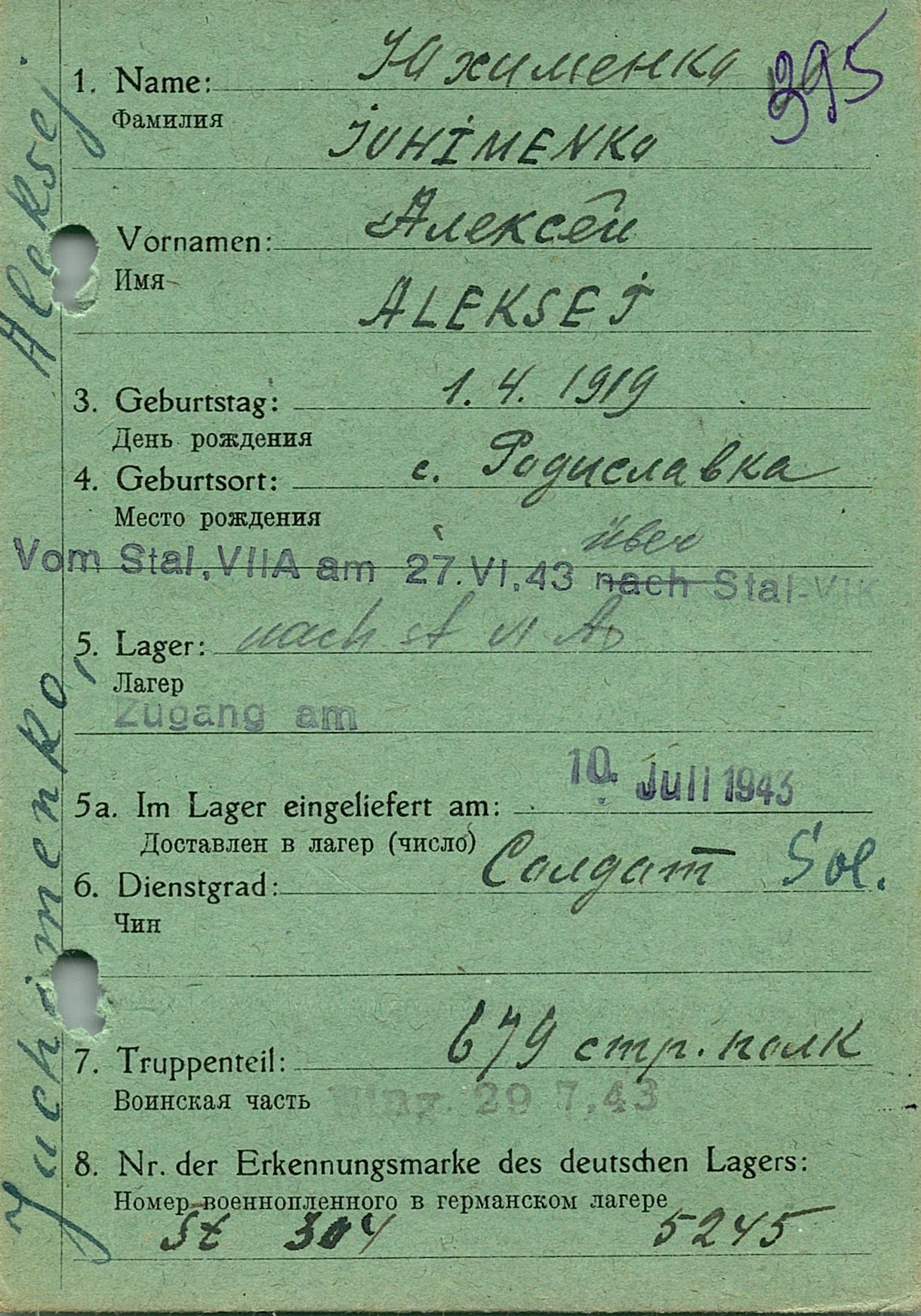 Военнопленные, трофейные карточки. Киевская обл.