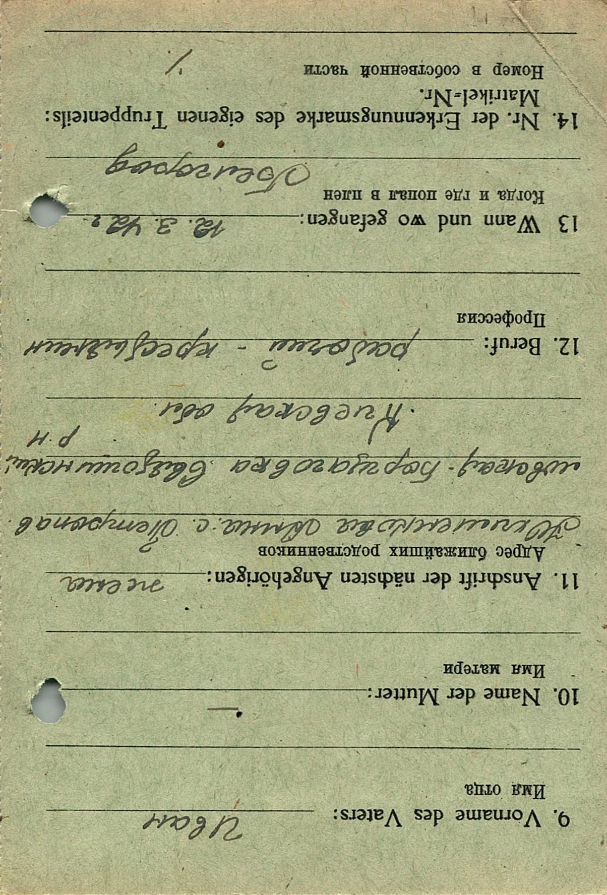 Военнопленные, трофейные карточки. Киевская обл.
