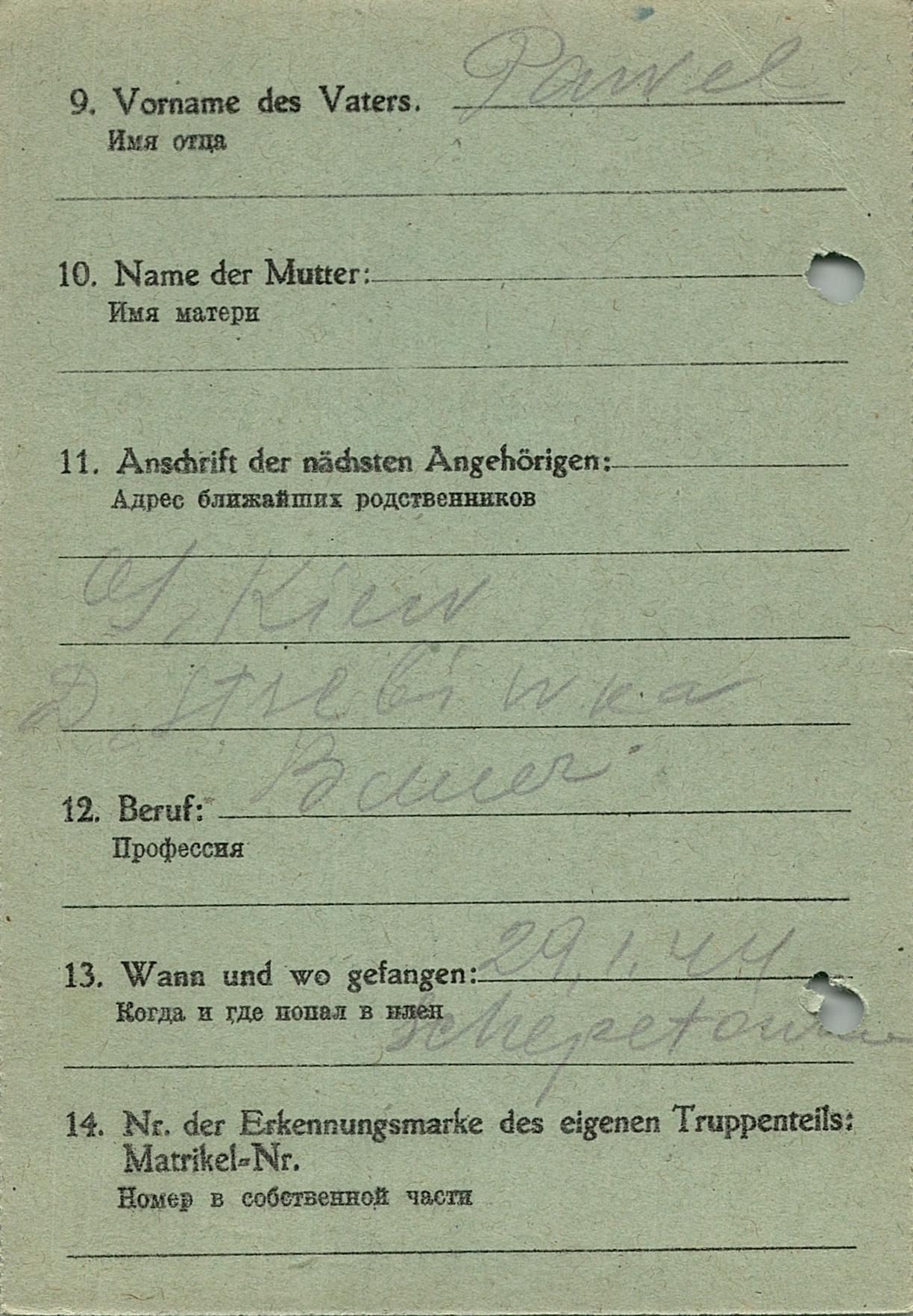Военнопленные, трофейные карточки. Киевская обл.