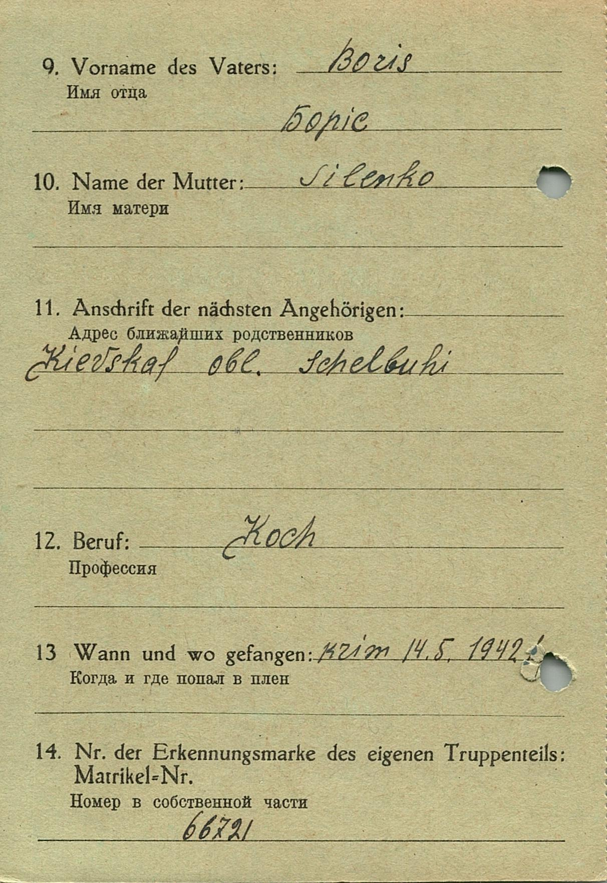 Военнопленные, трофейные карточки. Киевская обл.