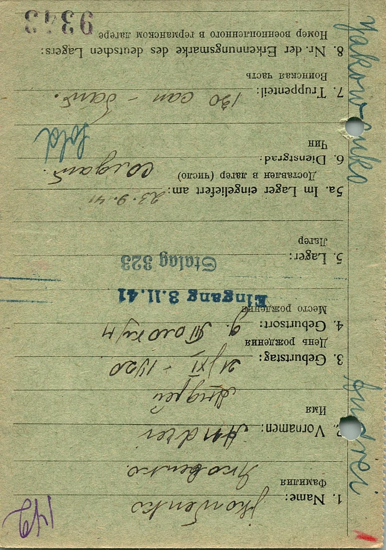 Военнопленные, трофейные карточки. Киевская обл.